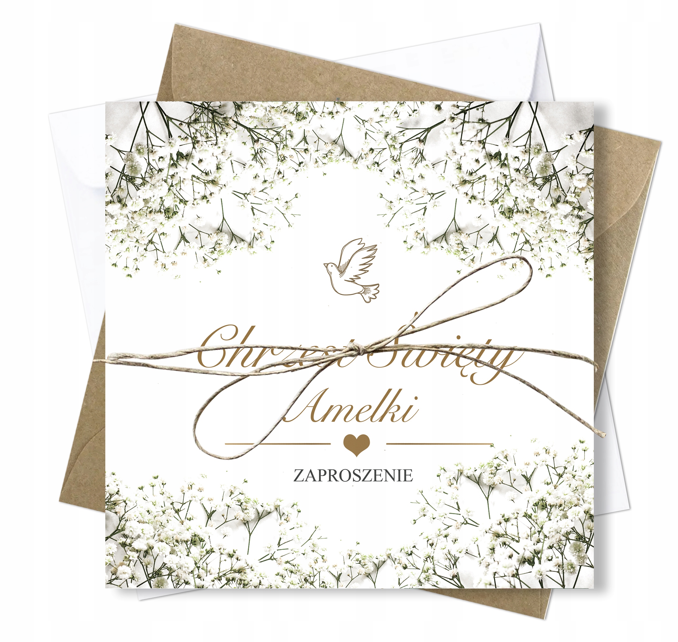 Запрошення на Хрещення Гіпсівка Бохо з конвертом