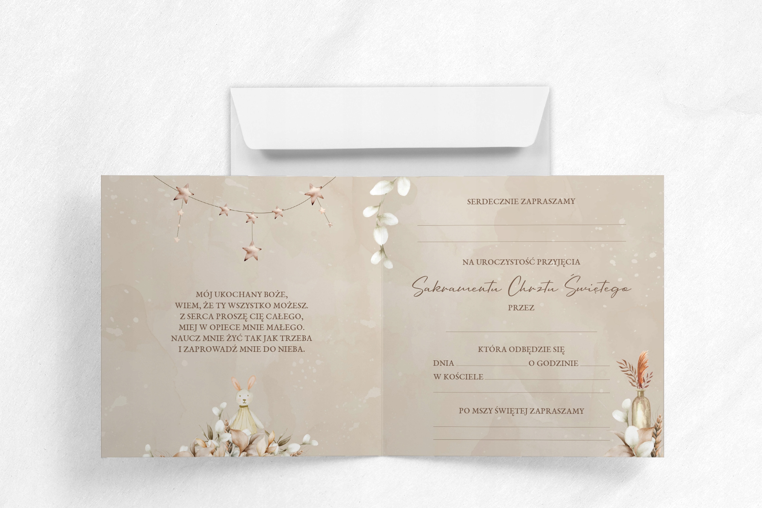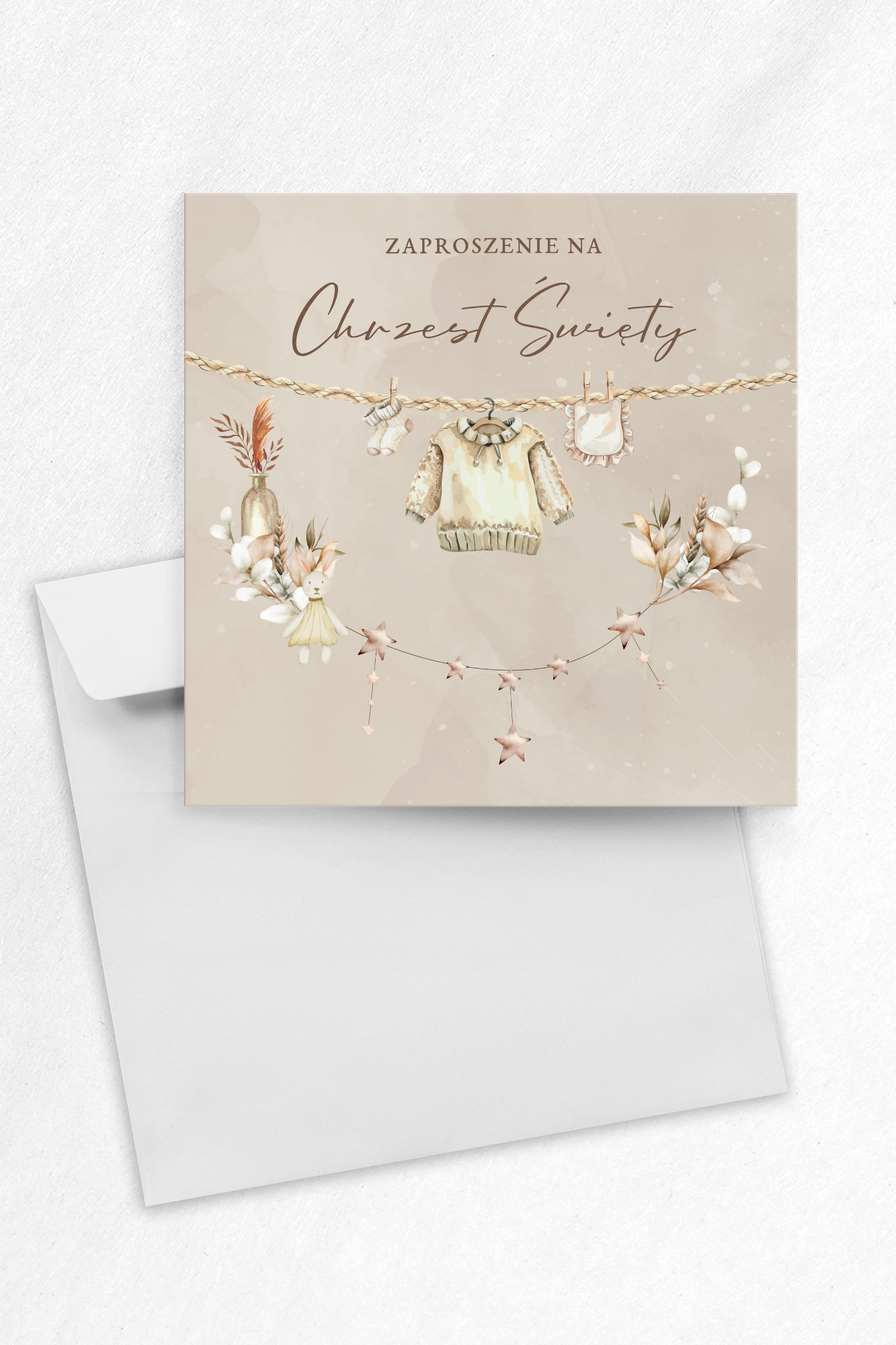 вимагайте своїх гостей на етапі запрошення! Наші унікальні запрошення до святого хрещення для хлопчика в стилі бохо -це витонченість, тонкість і вишукано кожну деталь. Ілюстрації делікатного одягу, підвісок та квіткових прикрас створюють спокійну, естетичну обстановку для цього надзвичайного святкування.