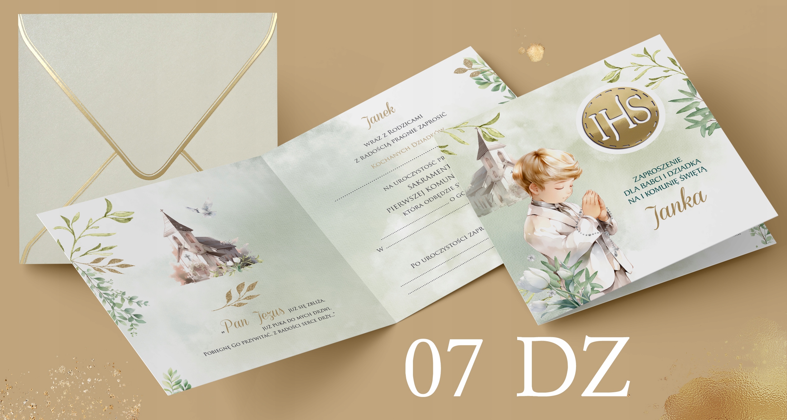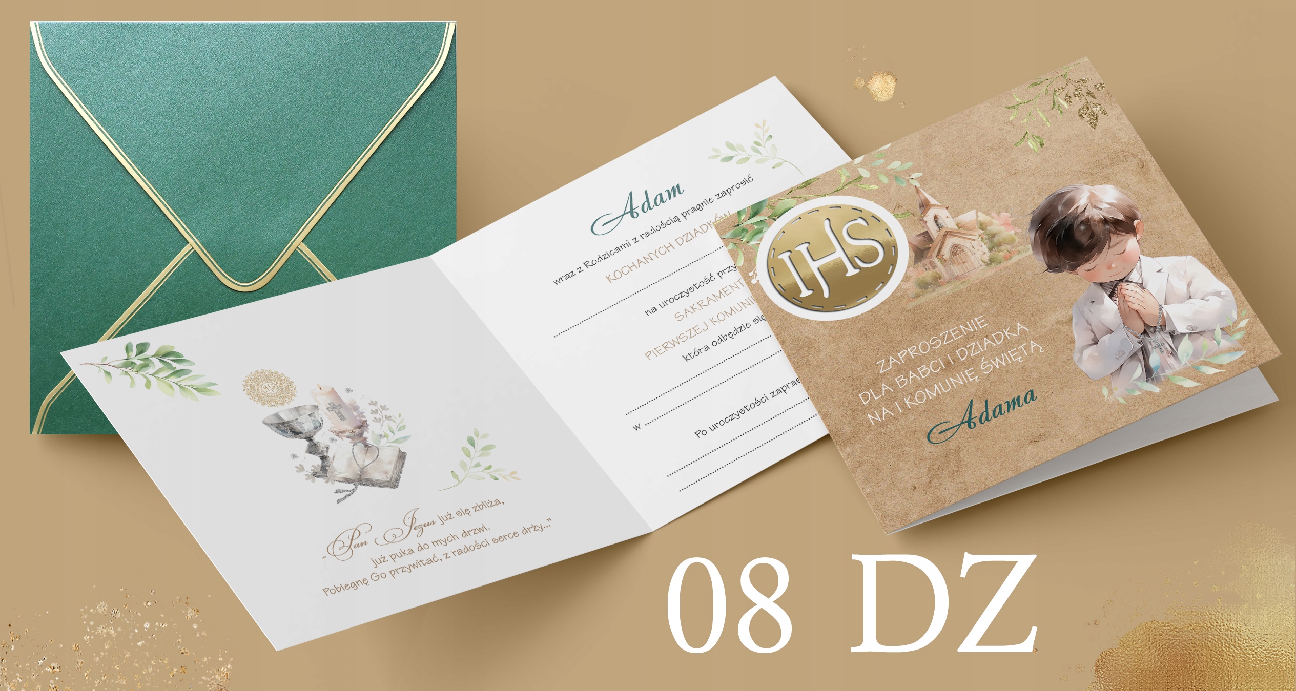 ЗАПРОШЕННЯ на Перше Причастя для бабусі, дідуся, бабусі з перламутровим конвертом