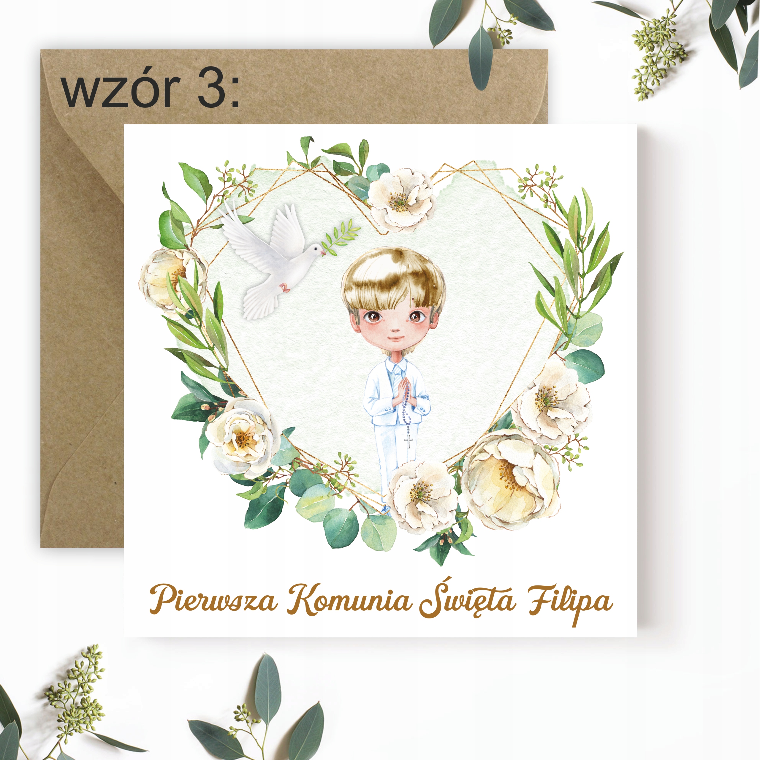 (Будь ласка, надайте готову інформацію для введення. Будь ласка, зробіть так, щоб повідомлення виглядало приблизно так: «Спереду: Причастя Ясі, всередині: Ян Новак...», будь ласка, введіть на свій розсуд, як це має бути на запрошеннях Редагувати можна тільки ім'я дитини, решта тексту редагувати не можна.)
