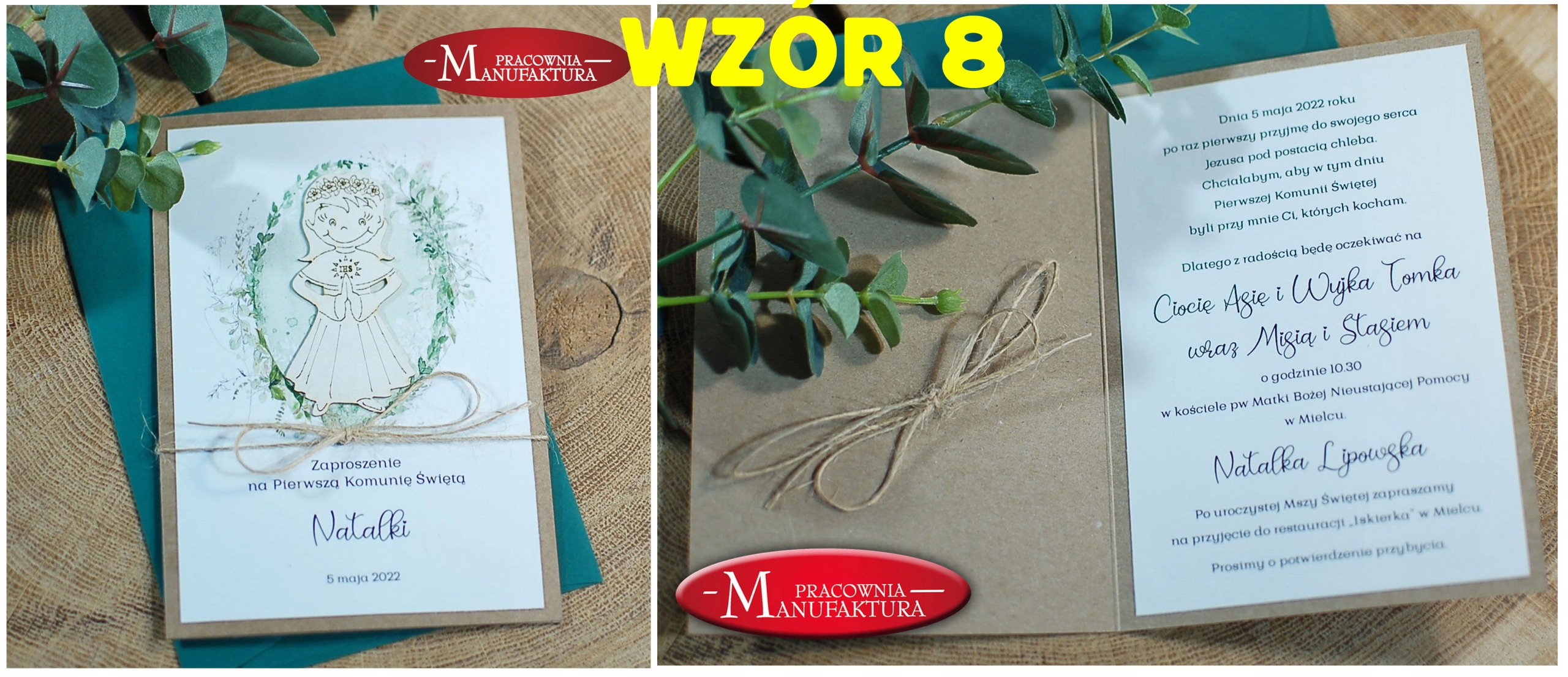 Рустикальні запрошення ручної роботи на Перше Святе Причастя.