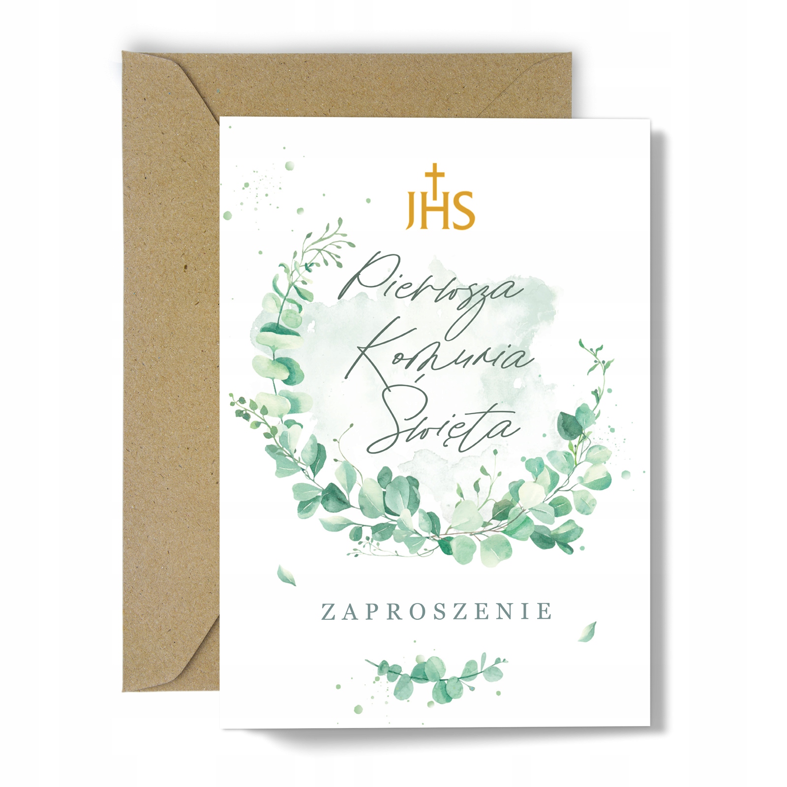 Унікальні запрошення на перше причастя з наймоднішим принтом гілок евкаліпта
