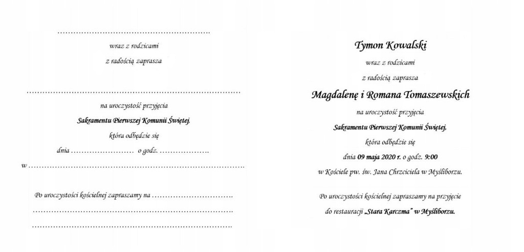 Запрошення на причастя (персоналізовані).