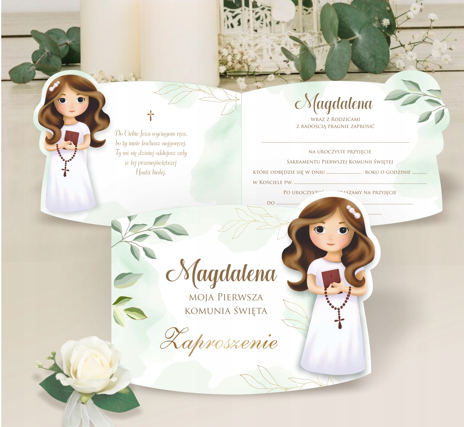 ЕЛЕГАНТНІ ЗАПРОШЕННЯ НА ПРИЧАСТЯ З ІМЕНЕМ ДИТИНИ + БЕЗКОШТОВНИЙ КОНВЕРТ
