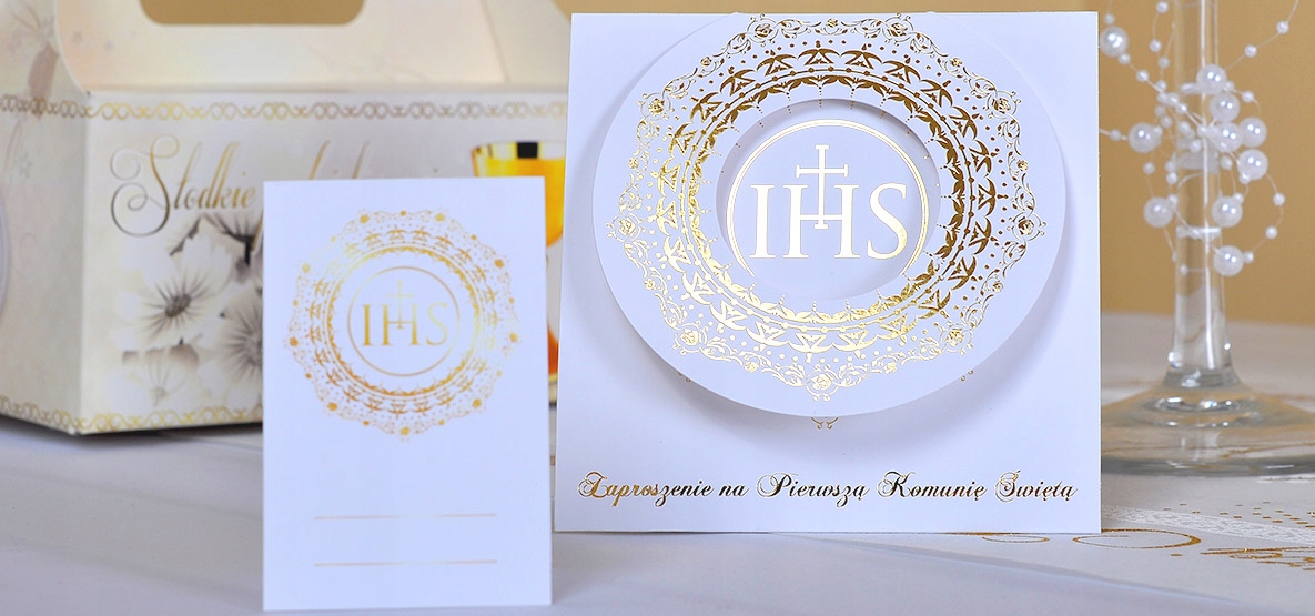 Запрошення на причастя з конвертом Golden IHS Host