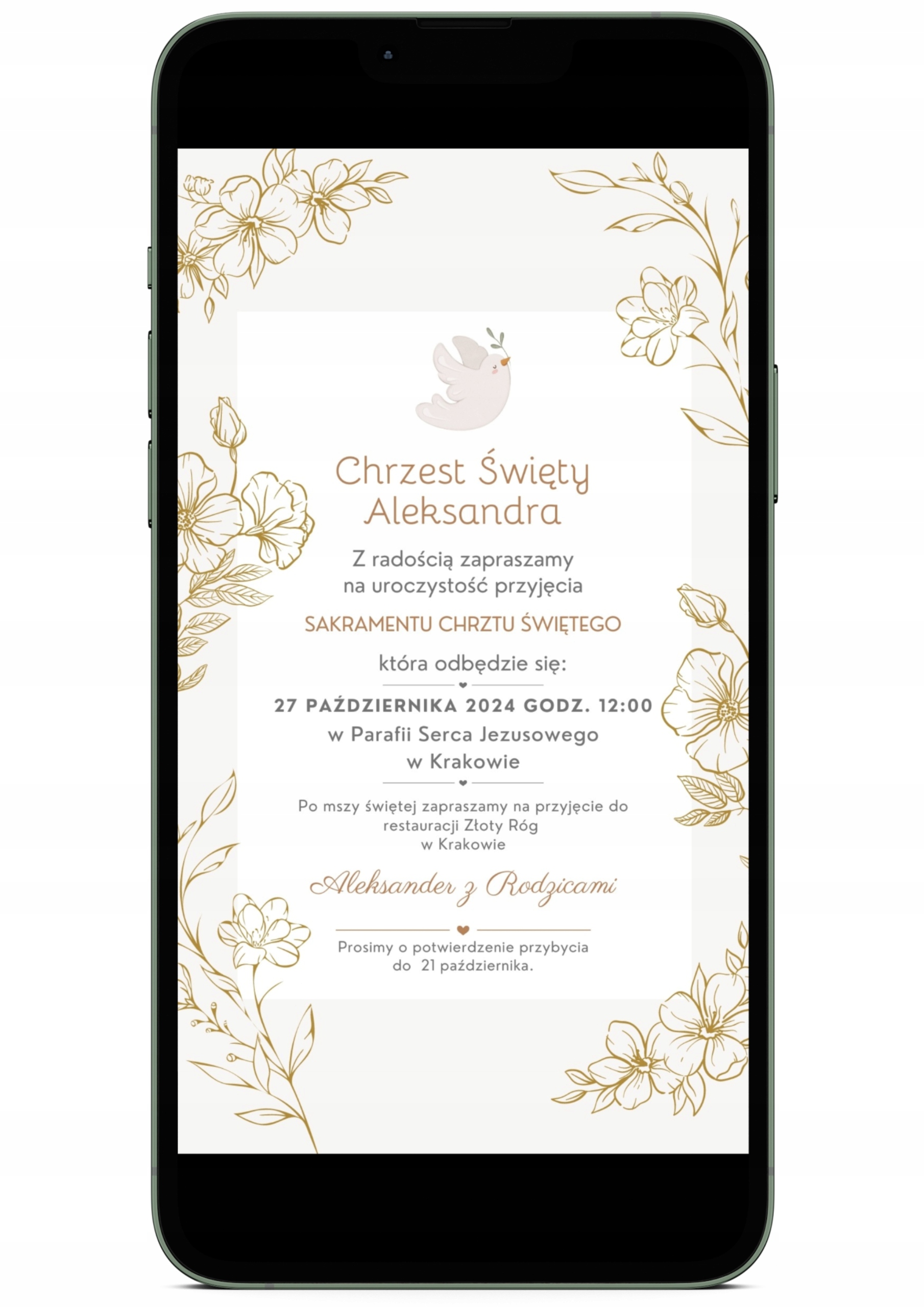 - Персоналізовані запрошення: високоякісний файл JPG у форматі 1080x1920, ідеальний для електронного надсилання через MMS, електронною поштою чи миттєвими повідомленнями.