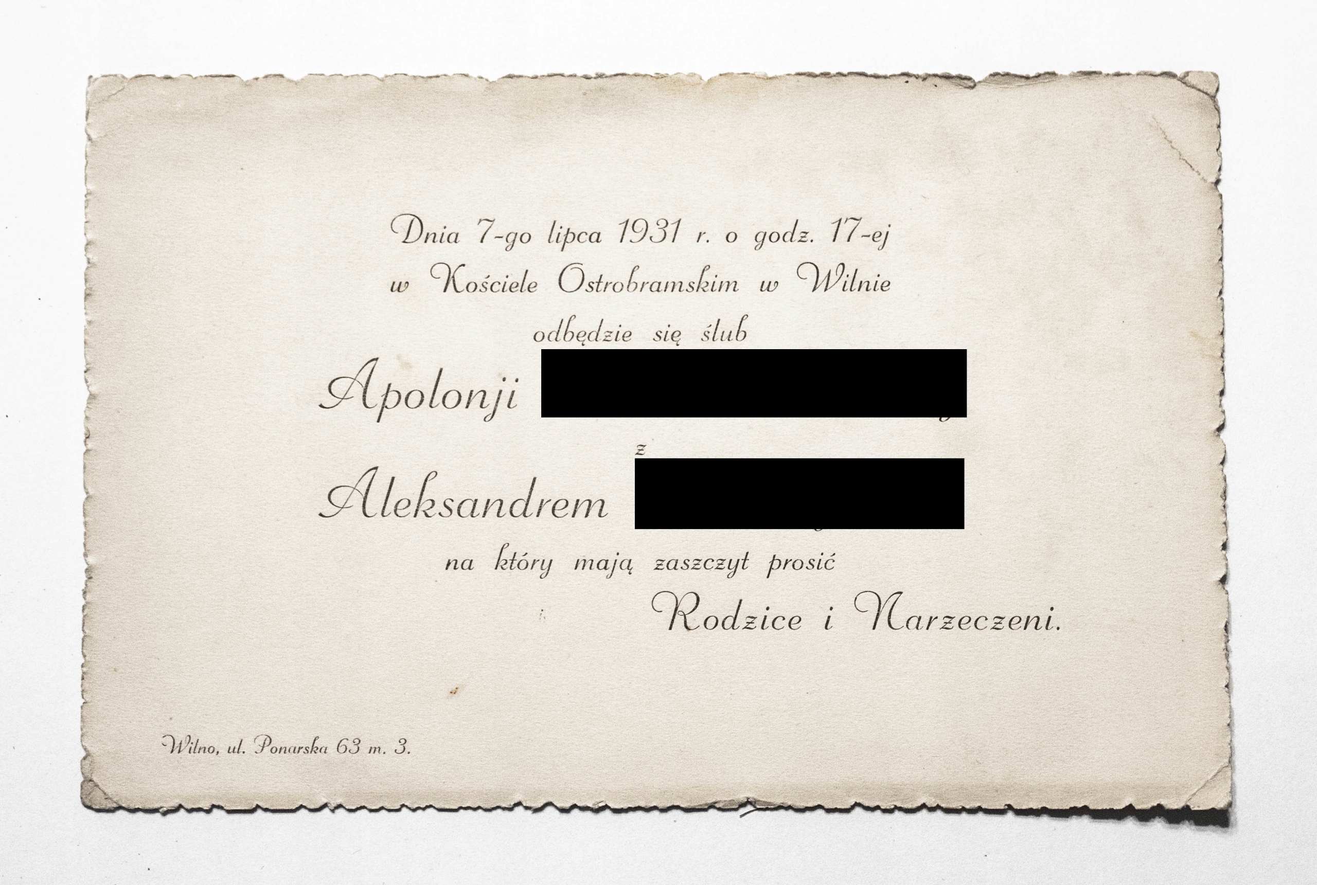 ЗАПРОШЕННЯ НА ВЕСІЛЛЯ - ВІЛЬНЮС 1931р