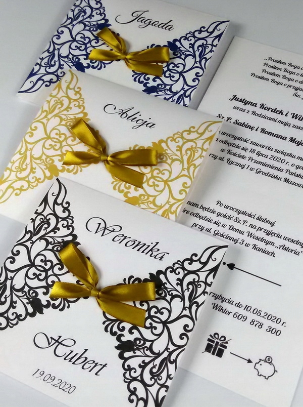Запрошення з колекції GIPIURA (символ візерунка G) доступні в різних кольорах гіпюрового принта з атласним бантом на обраний колір. Доступні кольори лука вказані внизу опису аукціону.