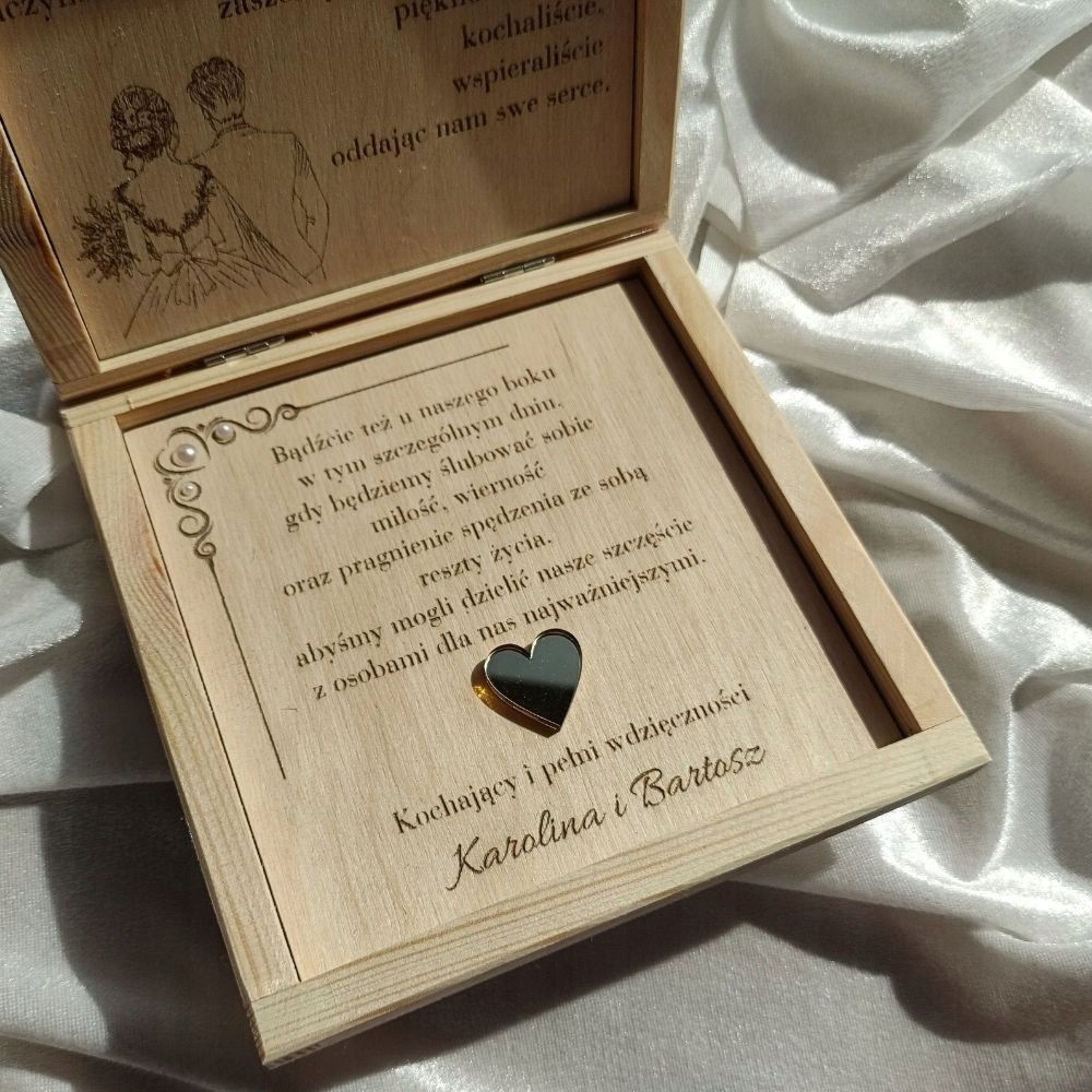 Запрошення батьків на ваше весілля - це особливий момент, сповнений емоцій та емоцій. Наше дерев’яне запрошення в елегантному коробці - це ідеальний спосіб подякувати їм за все і зробити цей момент ще більш унікальним.