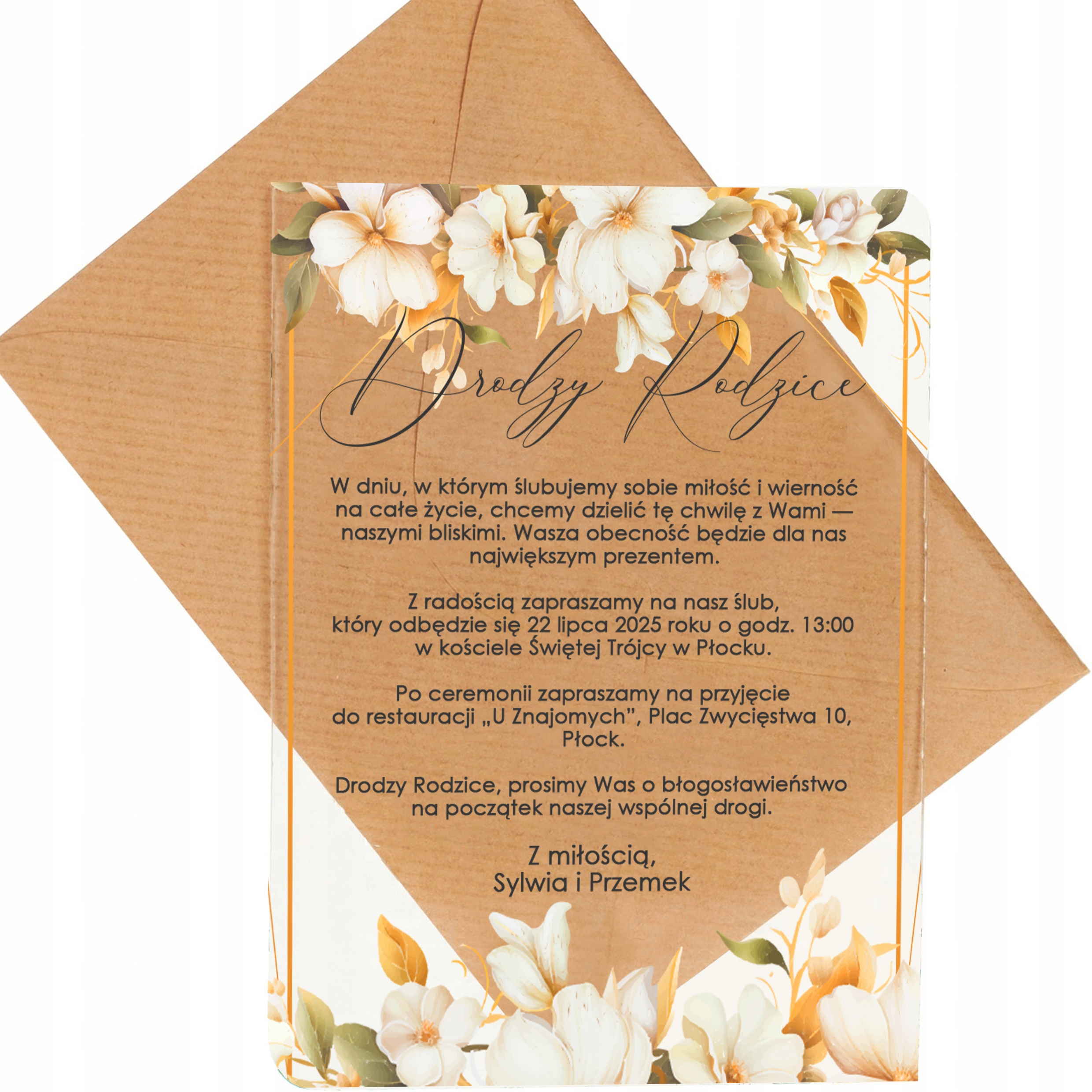 Запрошення на весілля для батьків весілля весільного оргскла білі квіти Lilie name