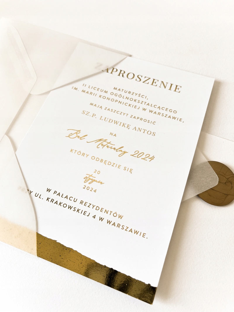 Елегантне позолочене запрошення на випускний.