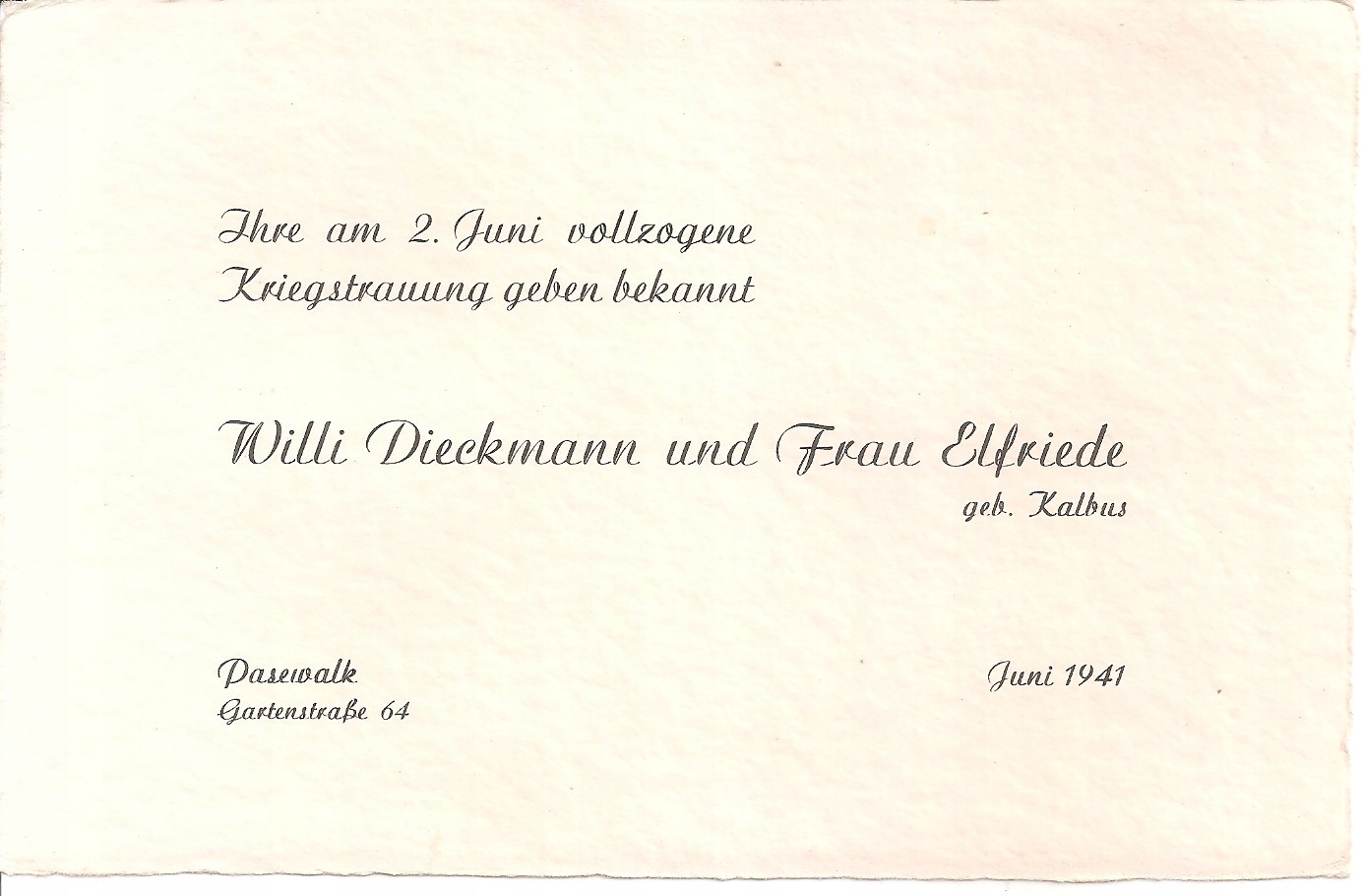 ЗАПРОШЕННЯ НА ВОЄННЕ ВЕСІЛЛЯ 1941 РОКУ.