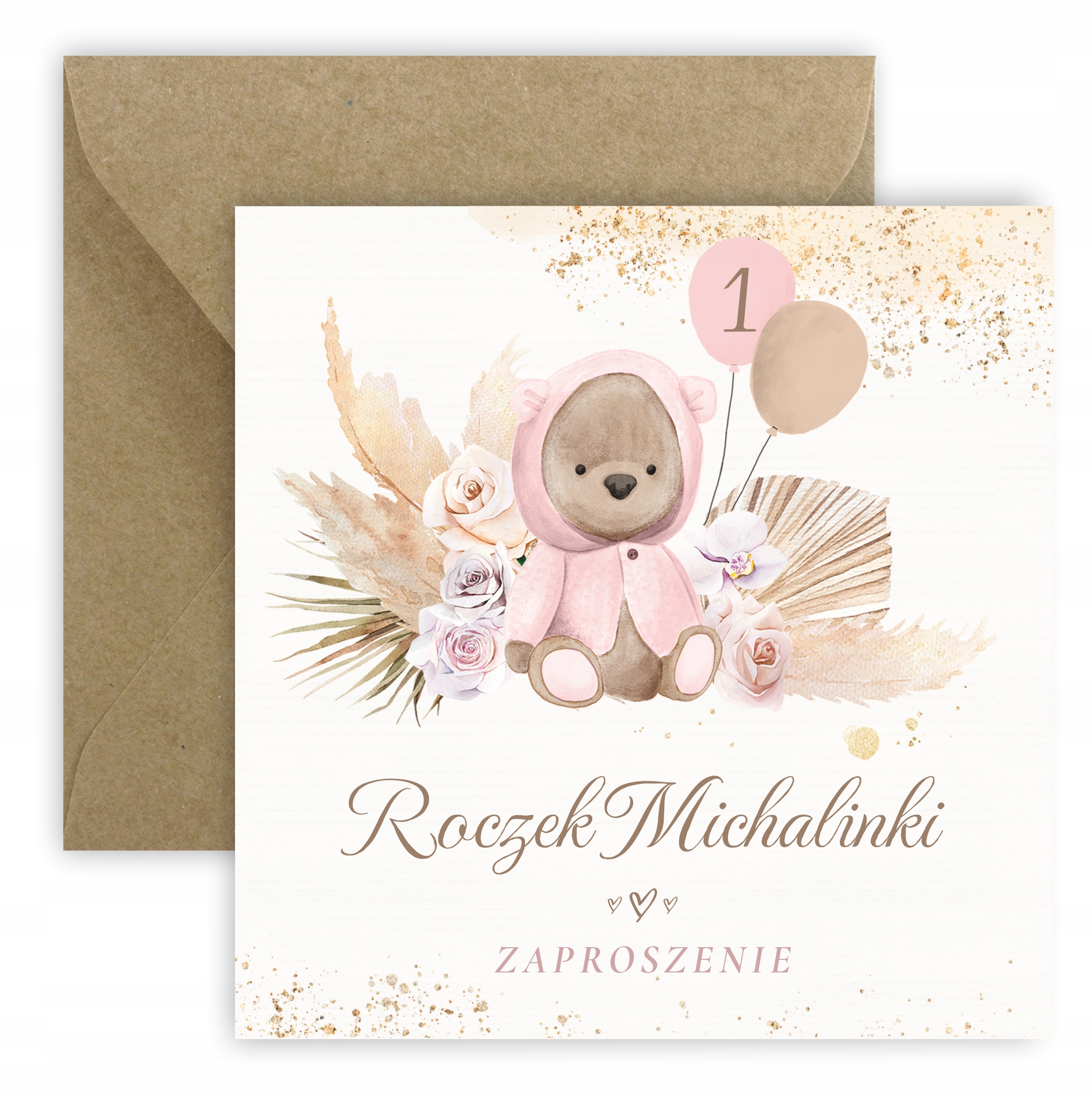 ЗАПРОШЕННЯ НА ЮВІЛЕЙ ІМЕННІ + ЕКО КОНВЕРТ, ВЕДМІДЬ РОЖЕВИЙ