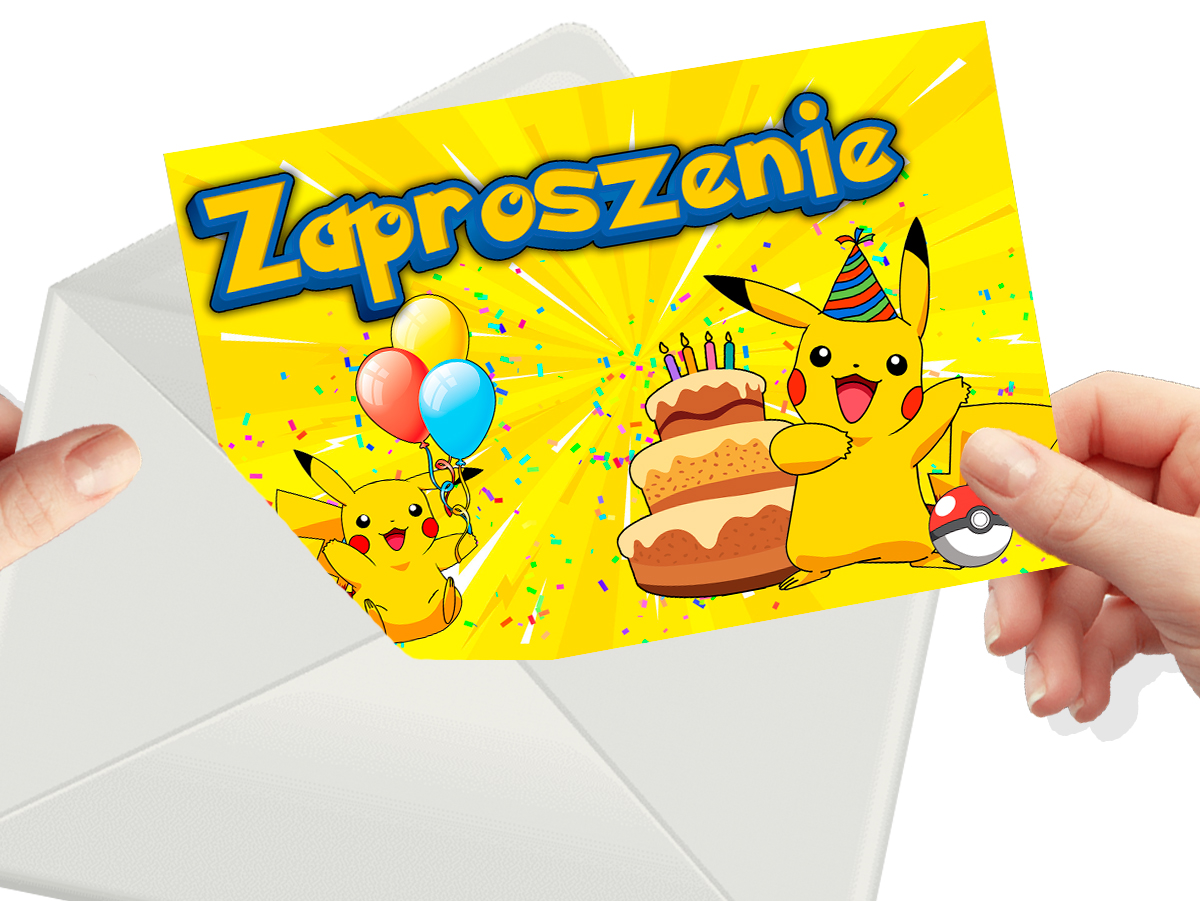 ЗАПРОШЕННЯ ПОКЕМОН ПІКАЧУ НА ДЕНЬ НАРОДЖЕННЯ ДИТИНИ + КОНВЕРТ Бонус 1 шт.