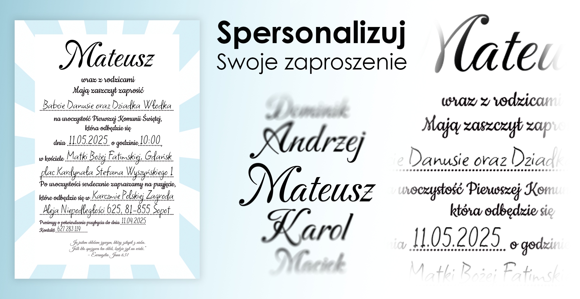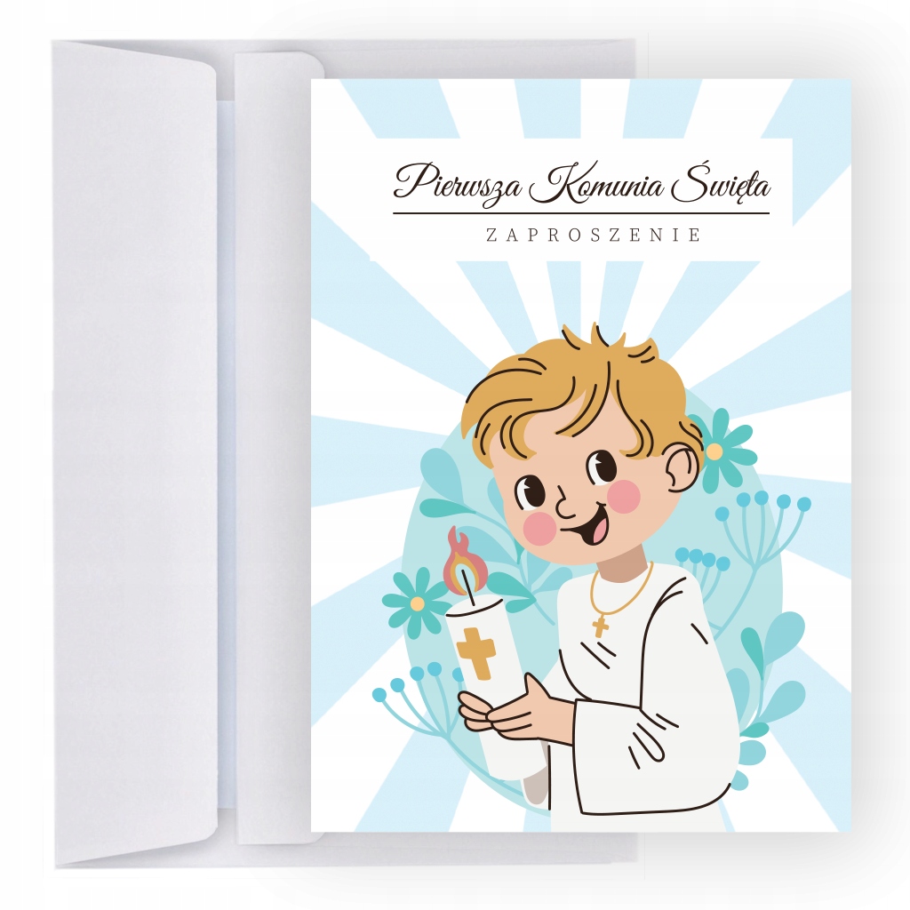 Запрошення причастя для хлопчика, персоналізованого, розміру A6 + конверт