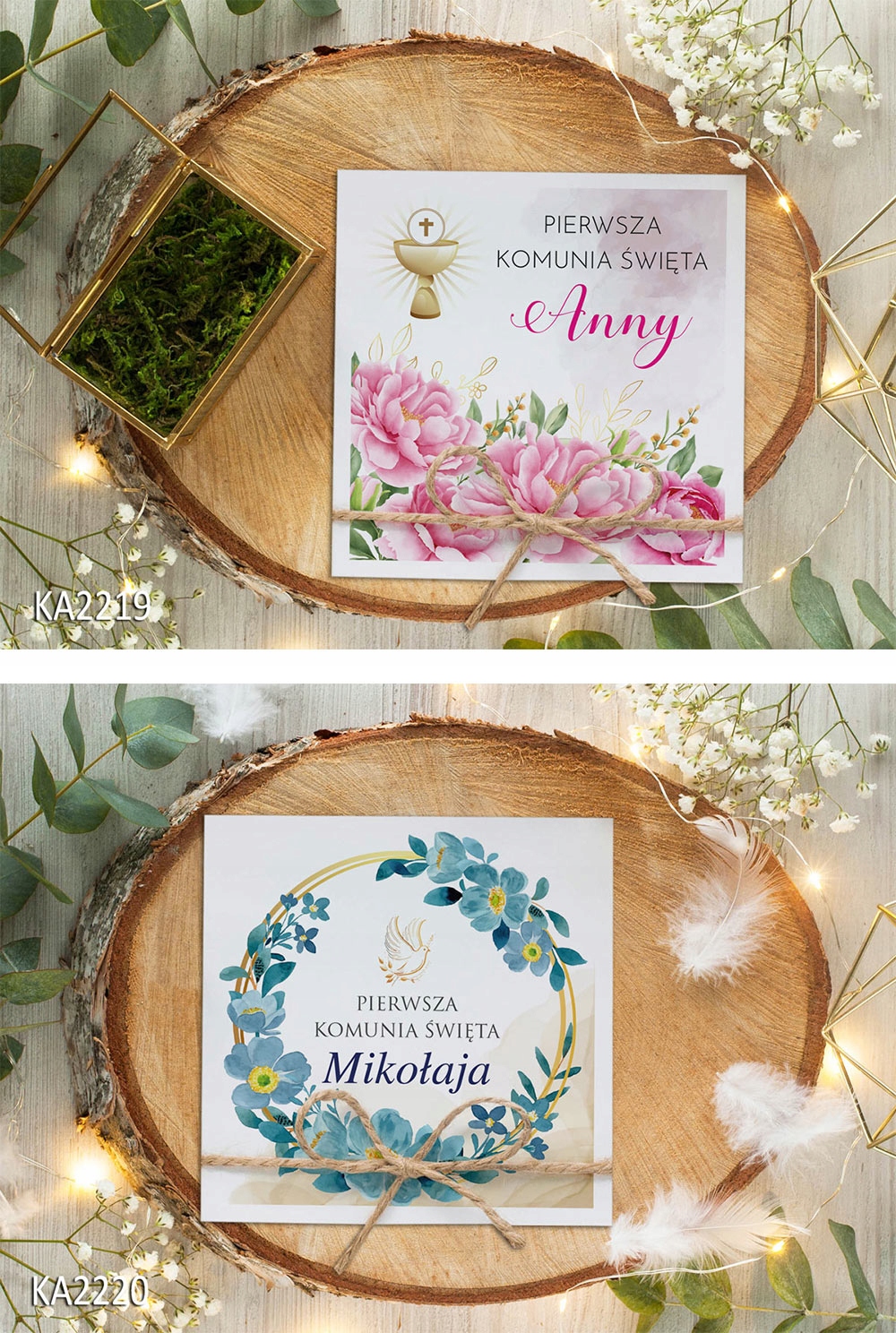 Запрошення в стилі Boho для Першого Святого Причастя, сині, квіткові + БЕЗКОШТОВНО