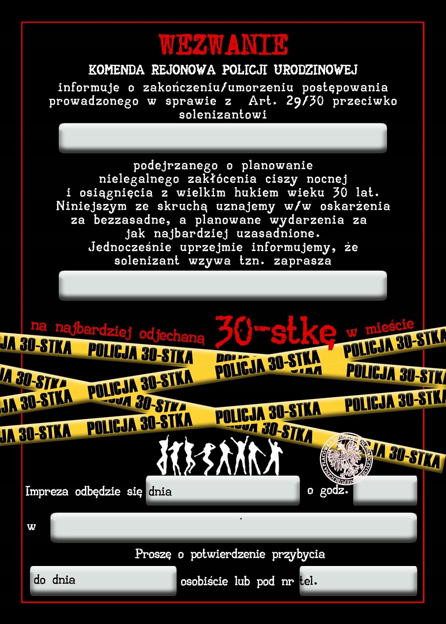 Запрошення запрошення на 30-й день народження W. поліція!