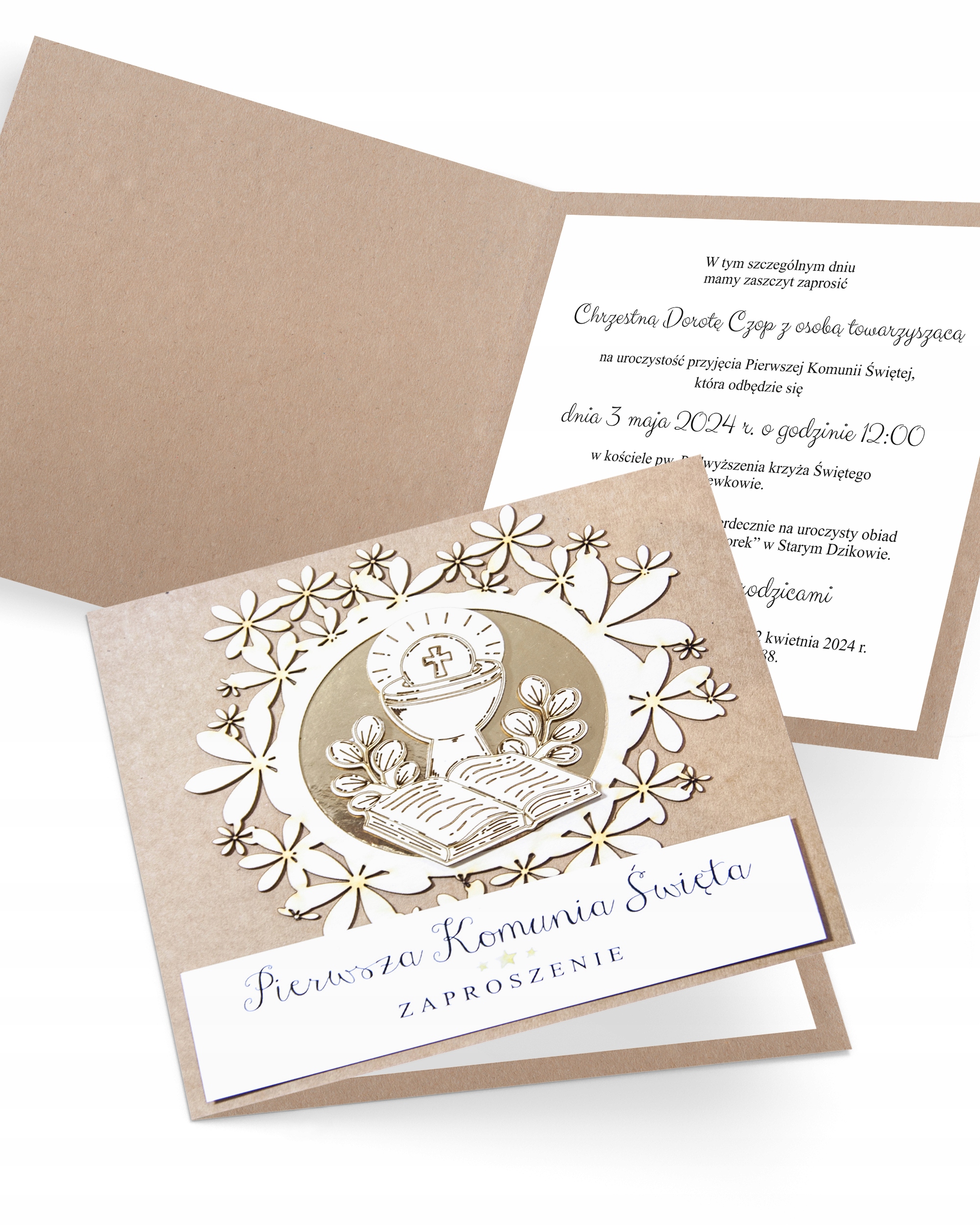 Zaproszenia Komunijne personalizowane z kopertą Floral Holy Host