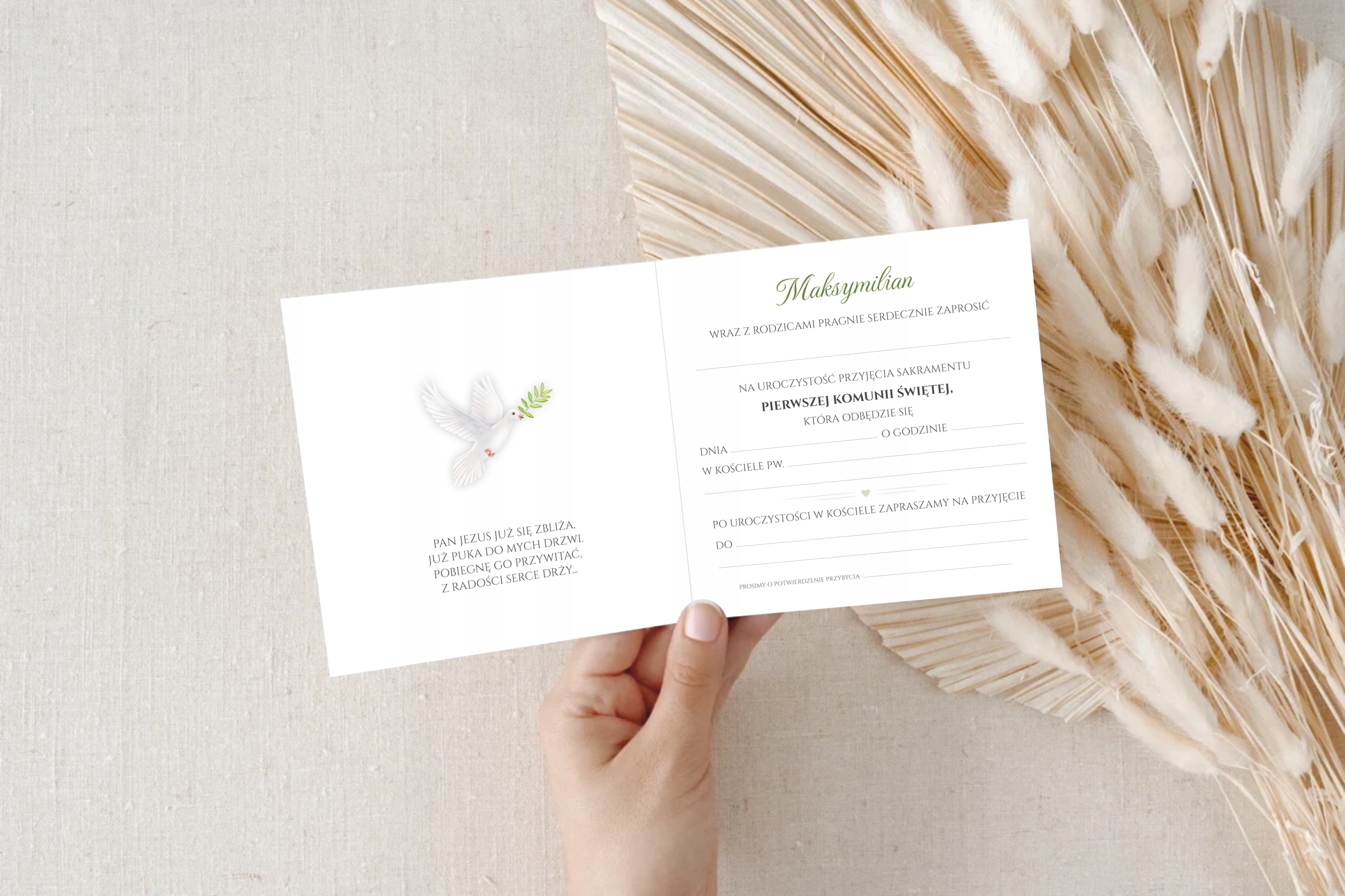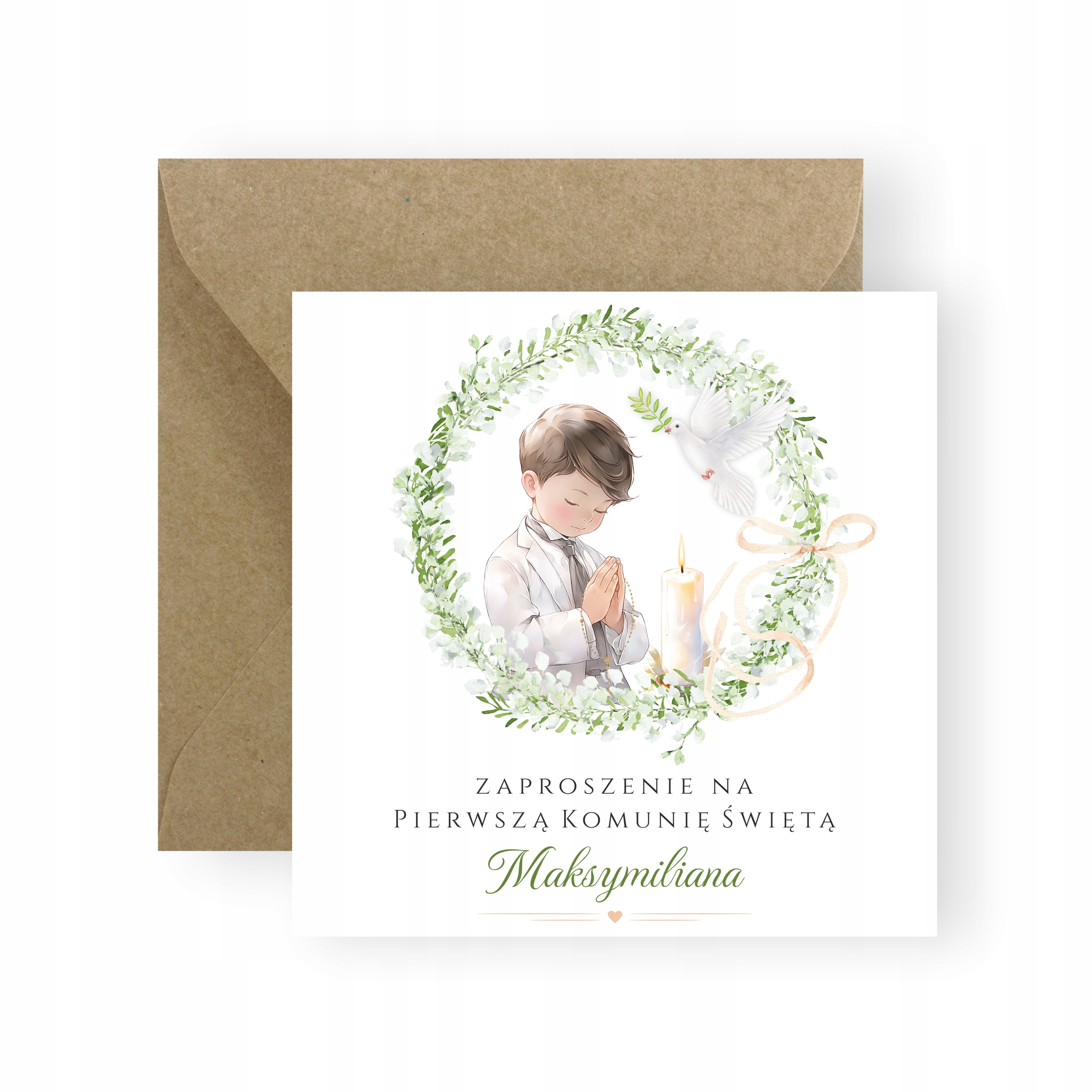 ZAPROSZENIA NA KOMUNIĘ DLA CHŁOPCA KONWALIE RUSTYKALNE + IMIĘ + KOPERTY