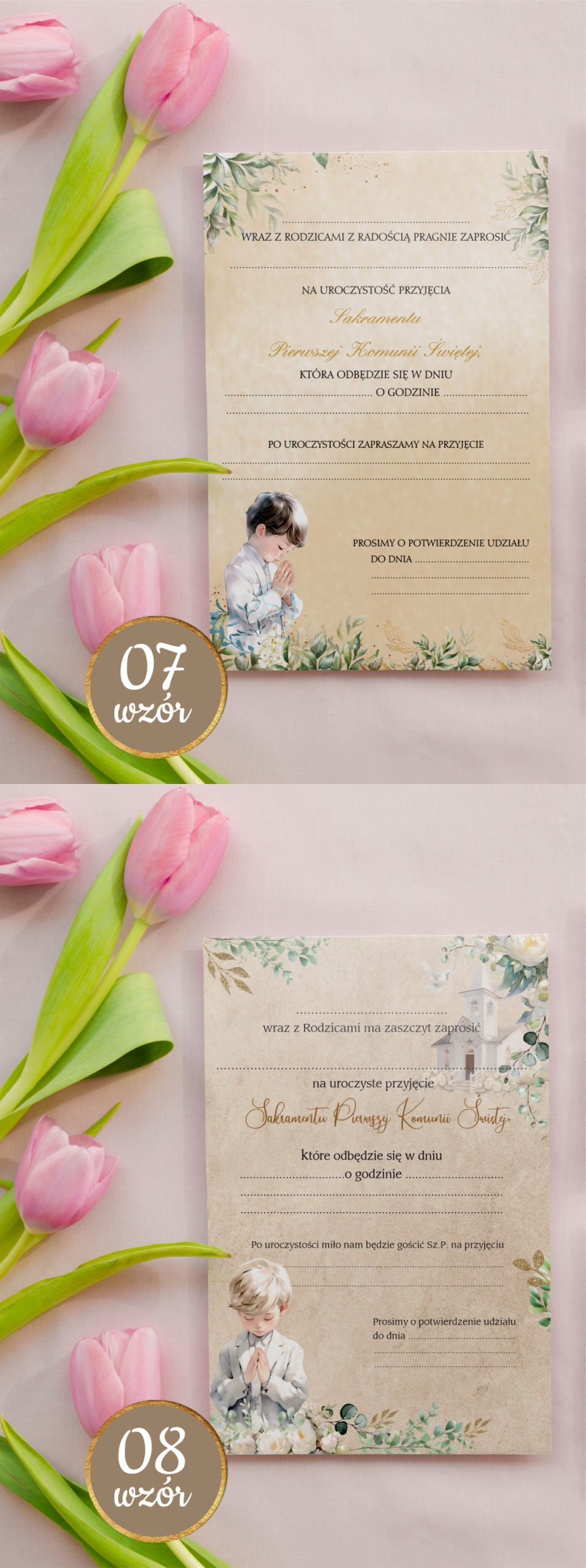 Zaproszenia NA KOMUNIĘ LASEROWE 3D perłowe złocone