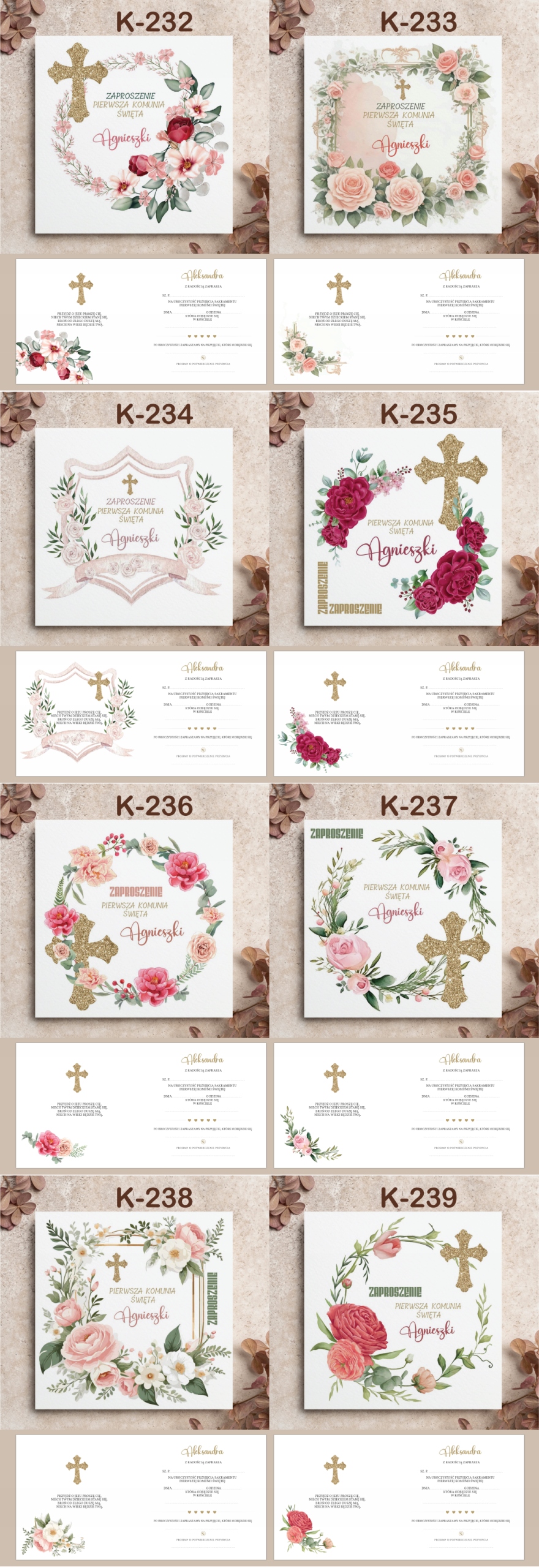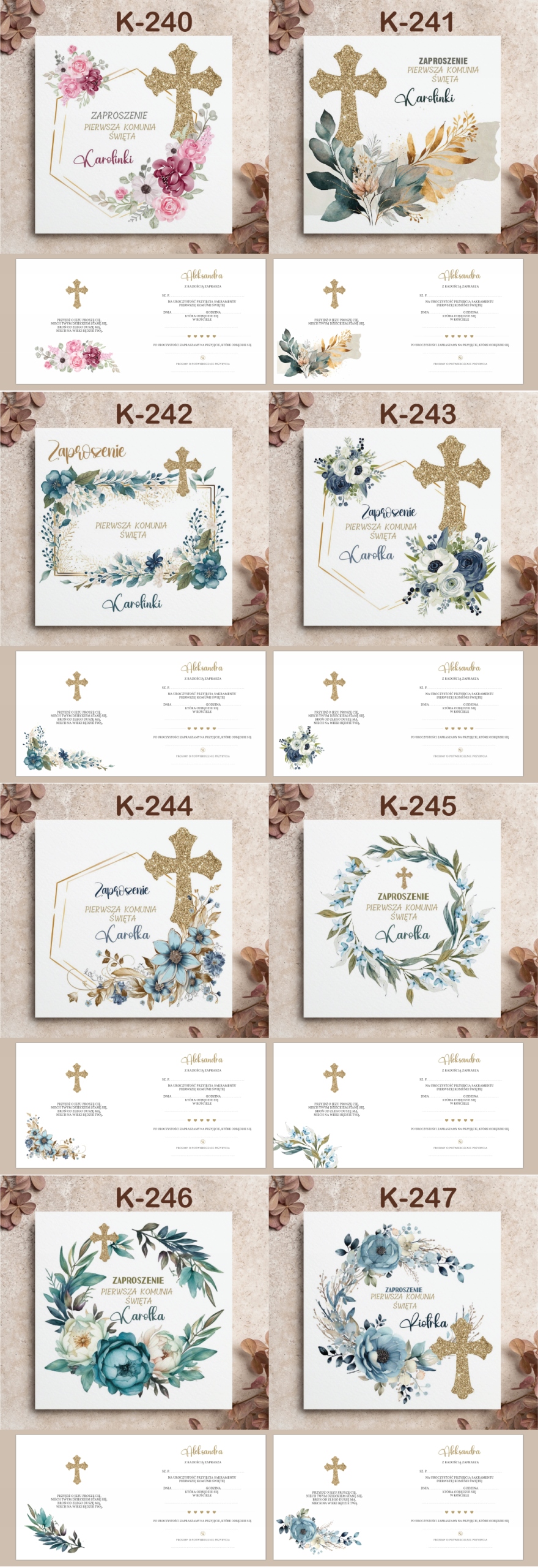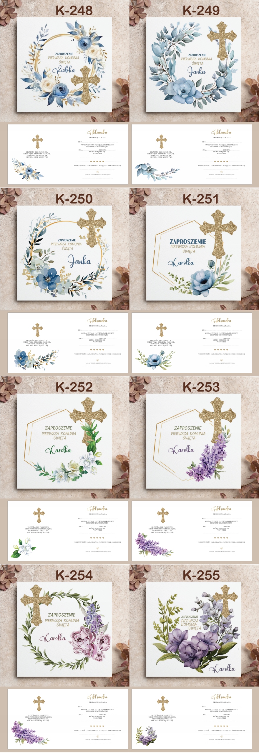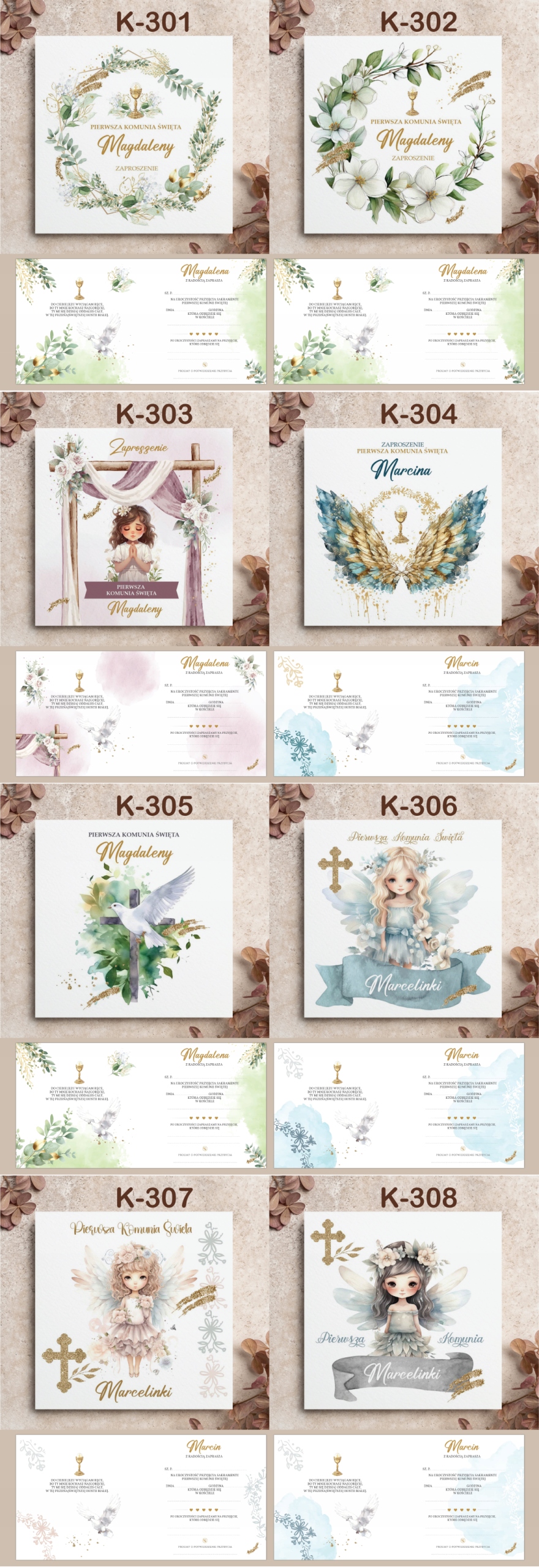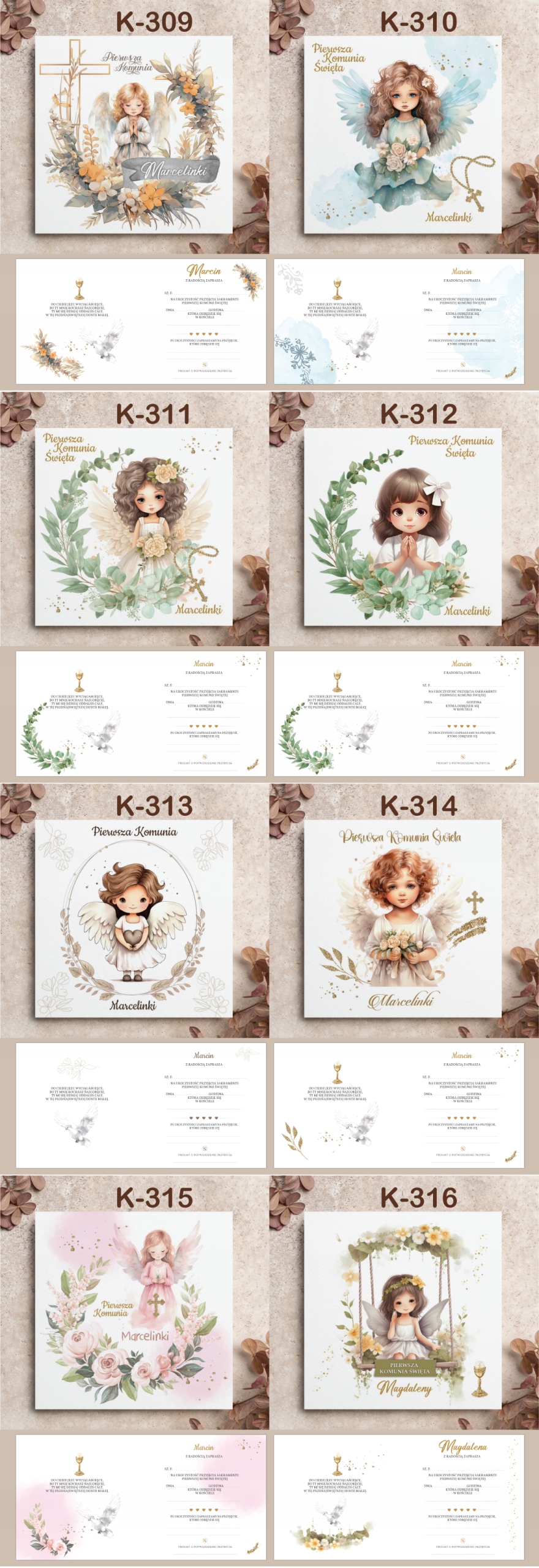 ZAPROSZENIA NA PIERSZĄ KOMUNIĘ ŚWIĘTĄ z personalizacją KOPERTA --100 wzorów