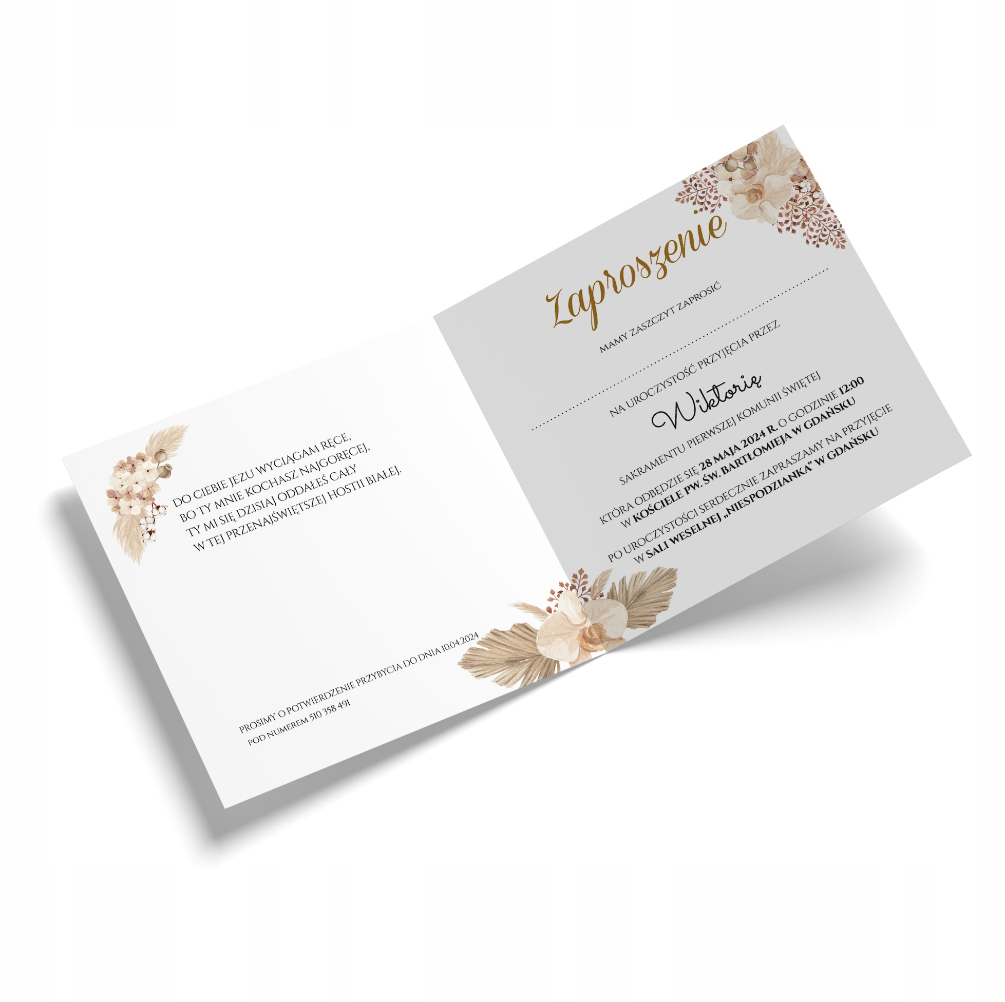 ZAPROSZENIA zaproszenie NA Komunię Świętą PERSONALIZOWANE boho rustyk ZK15