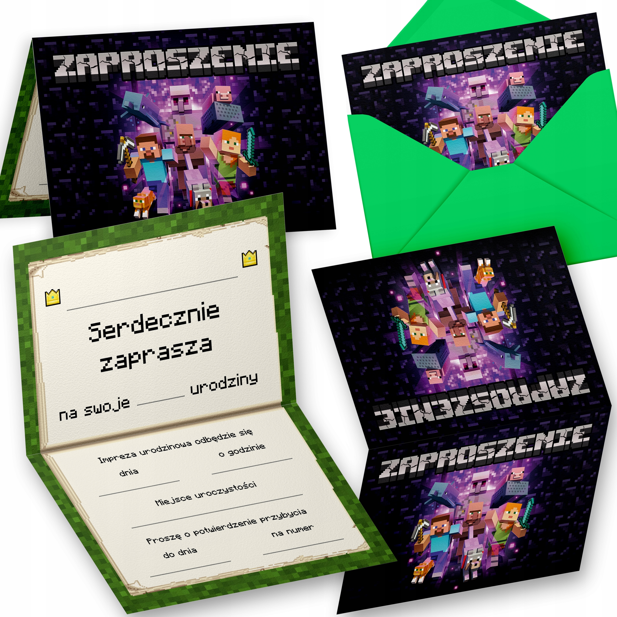 ZAPROSZENIE URODZINOWE MINECRAFT ZAPROSZENIA NA PRZYJĘCIE + KOPERTA