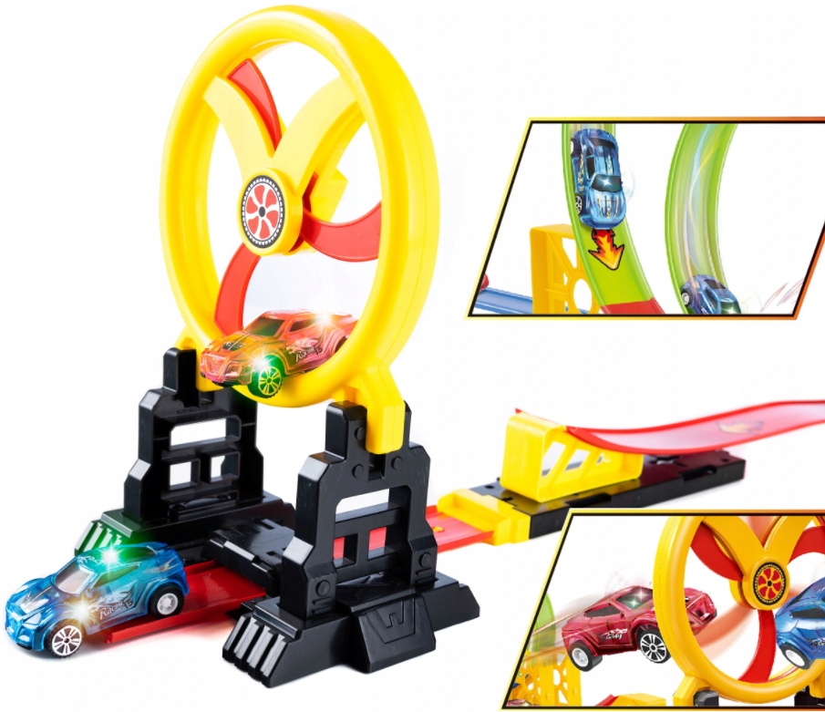 ➯ Ми пропонуємо доріжку загальною довжиною приблизно 140 см, яка має 2 повні петлі на 360°, що робить кататися надзвичайно видовищно .