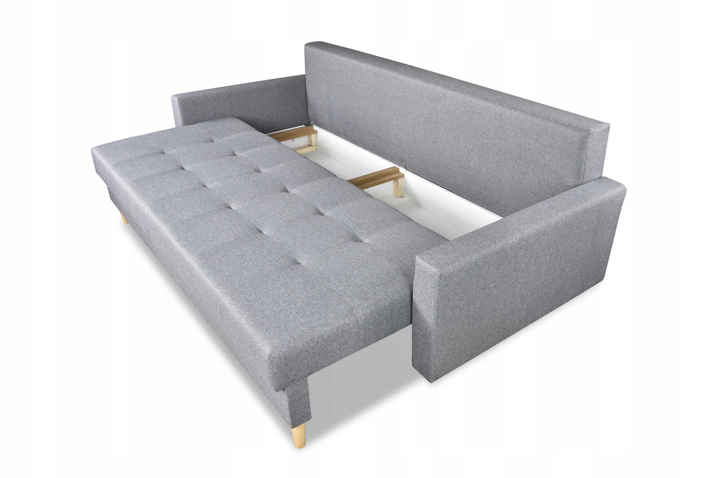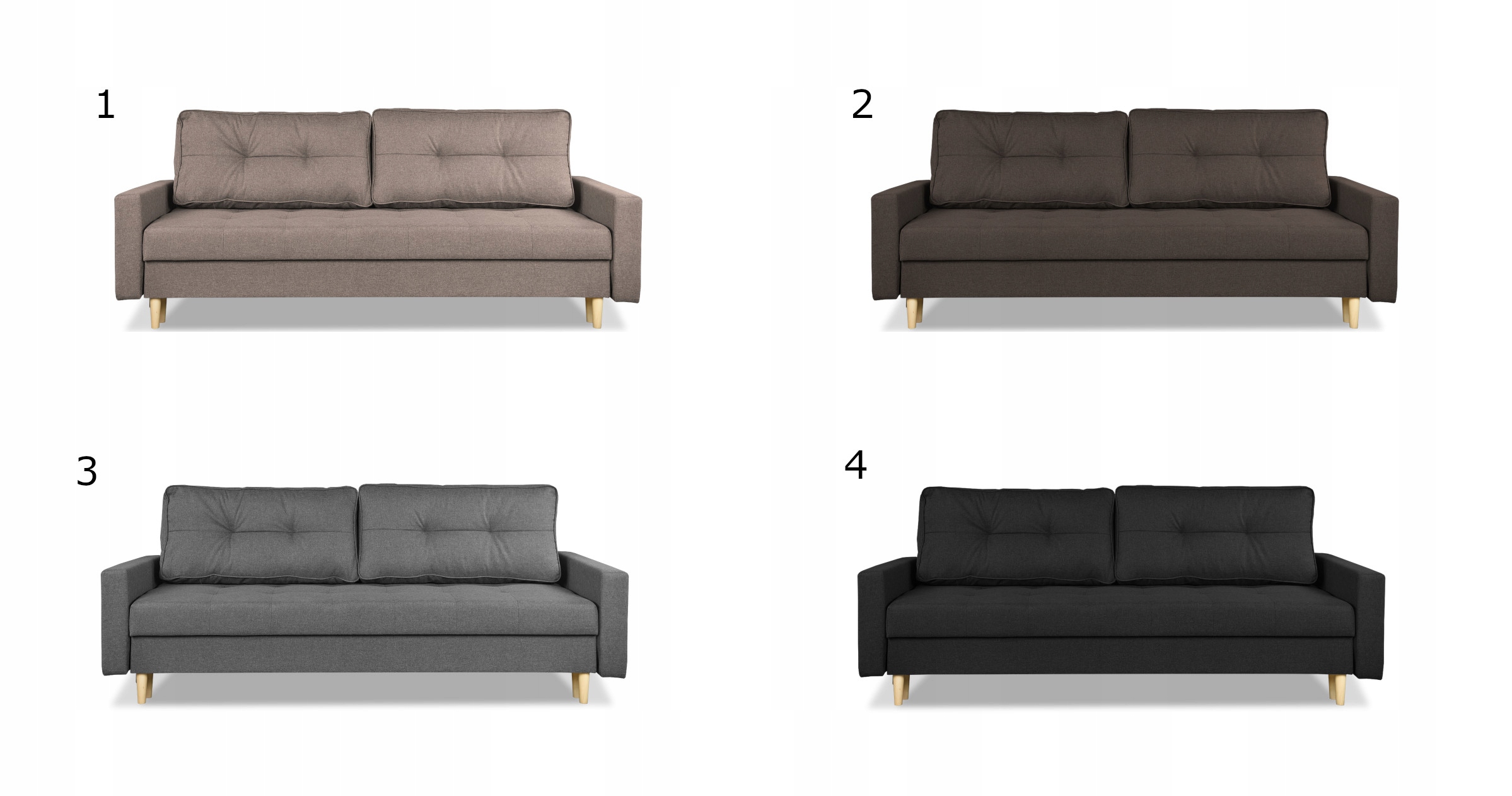 Диван має один великий контейнер для постільної білизни, як показано на фото, дві великі стьобані подушки на спинці та функцію сну, що входить у вартість.