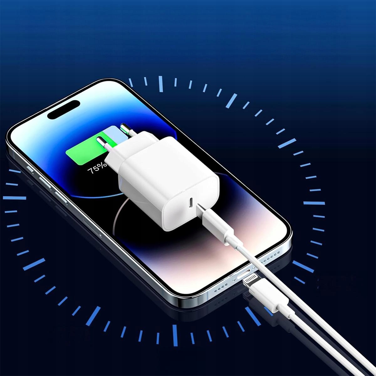 Швидкий зарядний пристрій iPhone із адаптером живлення маленький і портативний, його легко транспортувати та зберігати. Завдяки цьому ми можемо ефективно та швидко заряджати пристрій, незалежно від того, чи ми на роботі, вдома чи в дорозі.