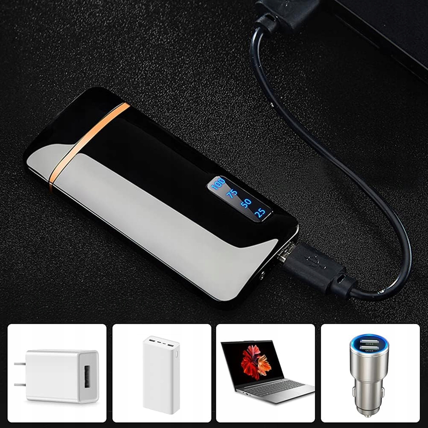 ЗАРЯДКА USB ПЛАЗМА ЗАПАЛЬНИЧКА ДВІЙНА ДУГА ЦИНКОВИЙ СПЛАВ ЧОРНИЙ