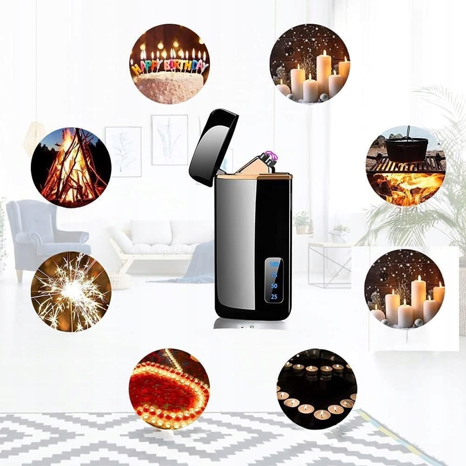 🔥Простота у використанні: Запаліть запальничку за допомогою датчика дотику, легко запустити. Відображення рівня заряду для зручності.