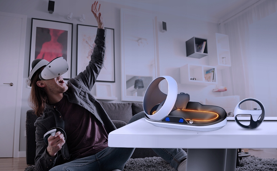 【Точний дизайн і порядок】Тримайте свою ігрову кімнату охайною та охайною, заряджаючи/зберігаючи 2 контролери PSVR2 в одному місці. Наша зарядна станція PSVR2 стане ідеальним подарунком для ваших друзів, які люблять грати в ігри VR.