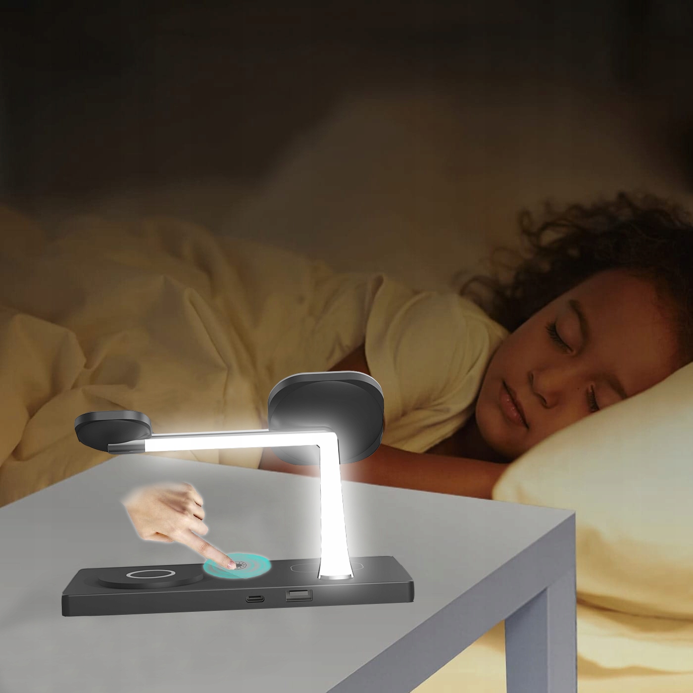 ⚡Багатофункціональний бездротовий зарядний пристрій MDT2186 Швидка зарядка до 5 пристроїв одночасно + світлодіодне нічне освітлення