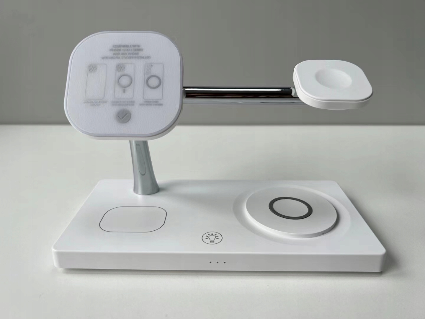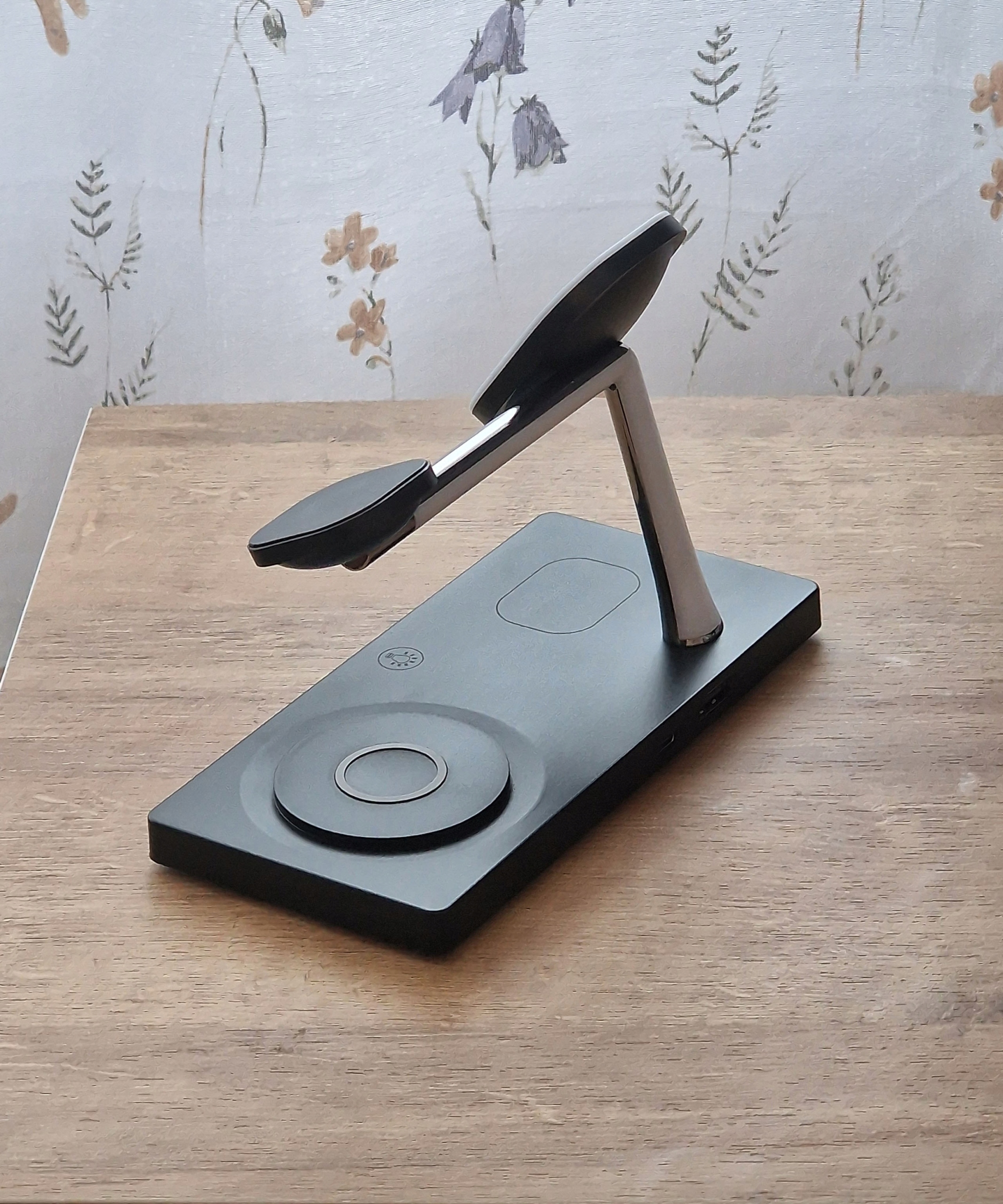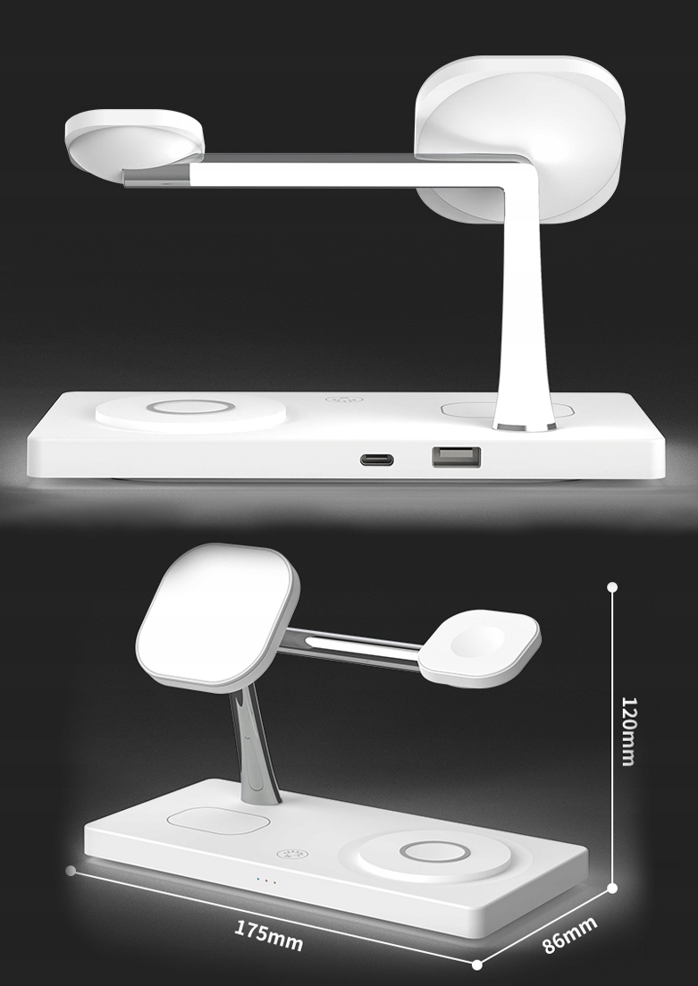 Ви шукаєте універсальний, багатофункціональний бездротовий зарядний пристрій, який можна використовувати для одночасної зарядки смартфона, смарт-годинника та навушників час? У нас є щось спеціально для вас! Надійний виріб з продуманою конструкцією у вигляді підставки значно підвищить комфорт щоденного використання ваших кишенькових гаджетів і допоможе підтримувати порядок на робочому столі.