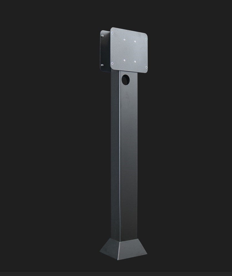 Стовп відрізняється сучасним дизайном, завдяки чому він ідеально вписується в будь-який ландшафт. Висока якість матеріалів і точність виготовлення гарантують довговічність і стійкість до погодних умов. Завдяки універсальному інтервалу монтажних отворів наш стовп сумісний із широким спектром зарядних пристроїв, забезпечуючи безпечне та стабільне кріплення.