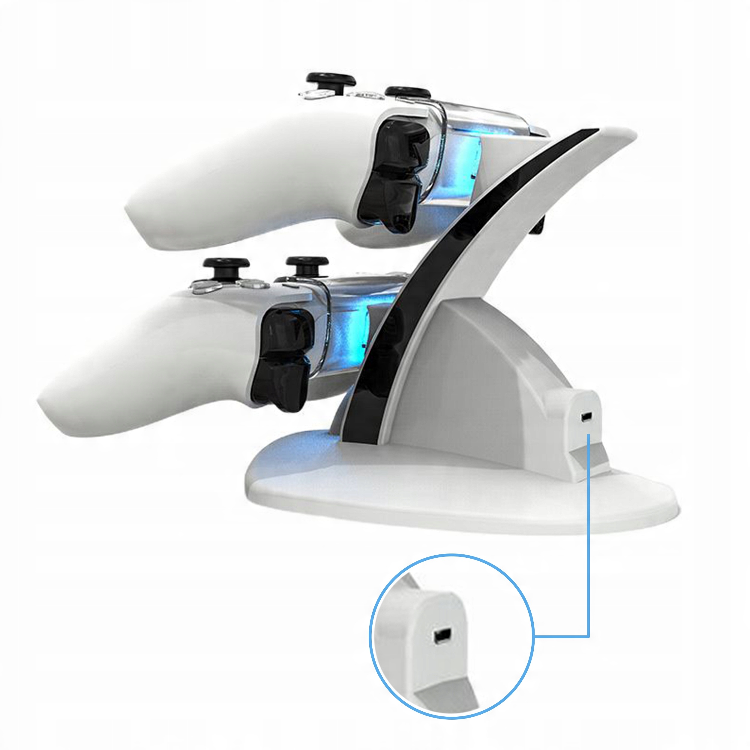 Док-станція дозволяє одночасно заряджати 2 контролери за короткий час. Його компактний дизайн означає, що він займає мінімальний простір, а керування ним надзвичайно інтуїтивно зрозуміле. Просто розташуйте контакти в спеціальних гніздах і підключіть станцію до джерела живлення за допомогою USB-кабелю, що входить у комплект.