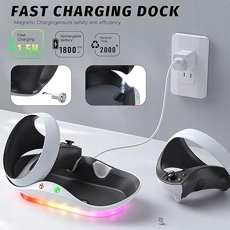 ✅ Ця зарядна станція контролера PS VR2 спеціально розроблена. Проста конструкція «підключай і працюй», не потрібно підключатися до консолі PlayStation5, не займає USB-портів, легко швидко зарядити контролер набору PlayStation VR2 Sense. Це обов’язковий аксесуар для PS VR2 для геймерів PS VR2, які володіють двома контролерами PS VR2.