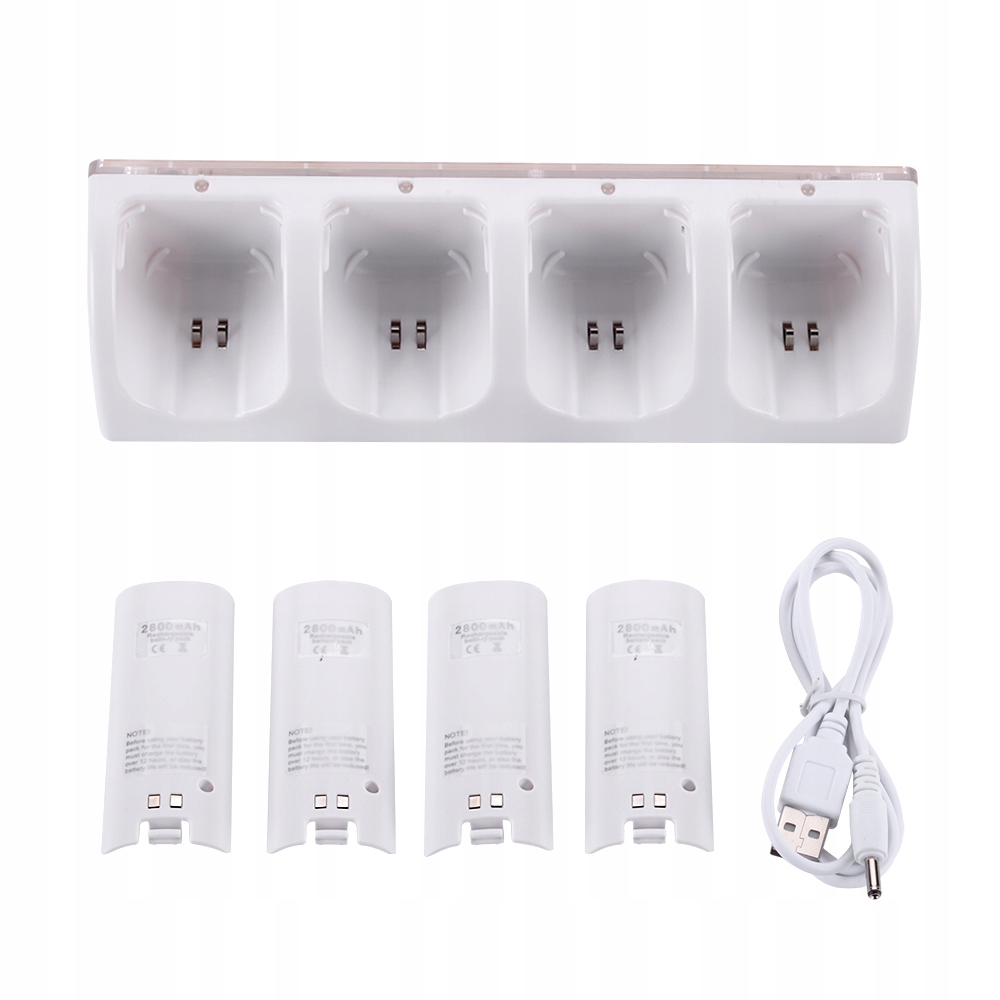 Цей зарядний пристрій Wii містить 4 батареї ємністю 2800 мАг, спеціально розроблені для Wii Remote, з батареєю Wii великої ємності, яка працює в 2-4 рази довше, ніж стандартні батареї AA.