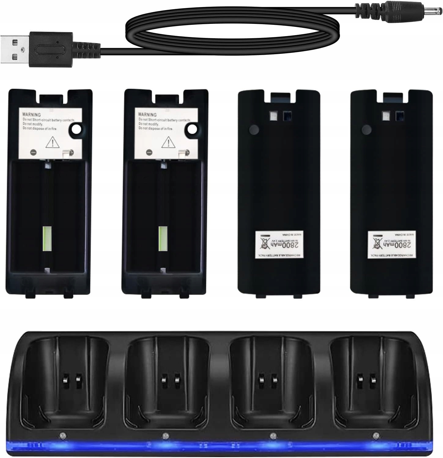 Цей зарядний пристрій Wii містить 4 батареї ємністю 2800 мАг, спеціально розроблені для Wii Remote, з батареєю Wii великої ємності, яка працює в 2-4 рази довше, ніж стандартні батареї AA.