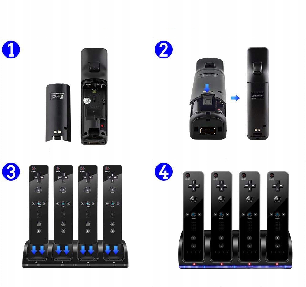 📦📦 Вміст упаковки: 4 акумуляторні батареї Wii + 1 док-станція (пластиковий корпус і металевий контакт) + 1 зарядний кабель + 1 коробка для паперу.