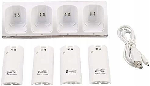 - Підтримка для чотирьох користувачів: зарядний пристрій оснащений чотирма наборами акумуляторів, які дозволяють чотирма гравцям одночасно використовувати ручки Wii. 4