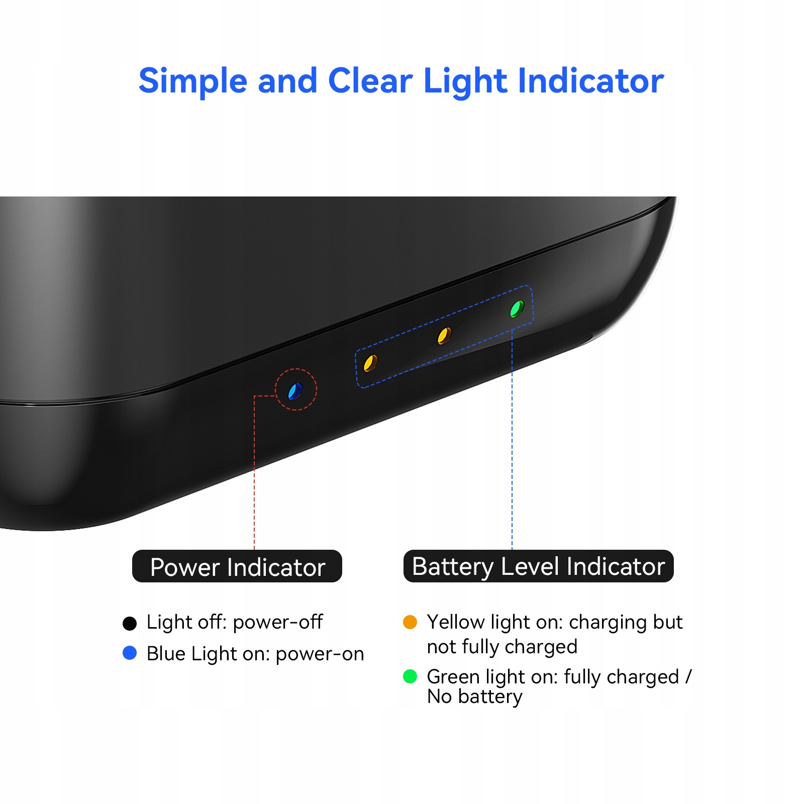 Простий і зрозумілий індикатор заряджання: вбудований світлодіодний індикатор у станції заряджання акумулятора дозволяє візуально відобразити стан заряду кожного акумулятора. Синє світло: корпус зарядного пристрою підключено до джерела живлення. Жовте світло: батарея заряджається. Зелене світло: батарея повністю заряджена. Параметри зарядного пристрою: Вхід: 5 В/3 А Вихід: 4,48 В/1 А Час заряджання: 2 години. інтелектуально заряджайте його з максимальною потужністю. Коли рівень заряду батареї високий, потужність заряджання поступово зменшуватиметься, а коли зарядка буде повністю заряджена, заряджання припиниться автоматично.