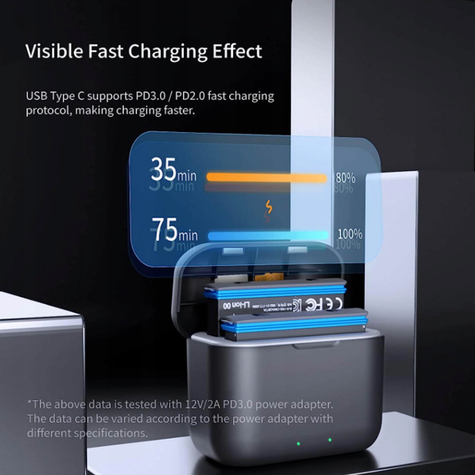 1. ПОРТАТИВНИЙ ДИЗАЙН: це зарядний пристрій для камери Insta360 X3 (батареї не входять). Кришку корпусу можна тримати закритою, акумулятор не пошкодиться від впливу, і його можна легко носити в сумці.