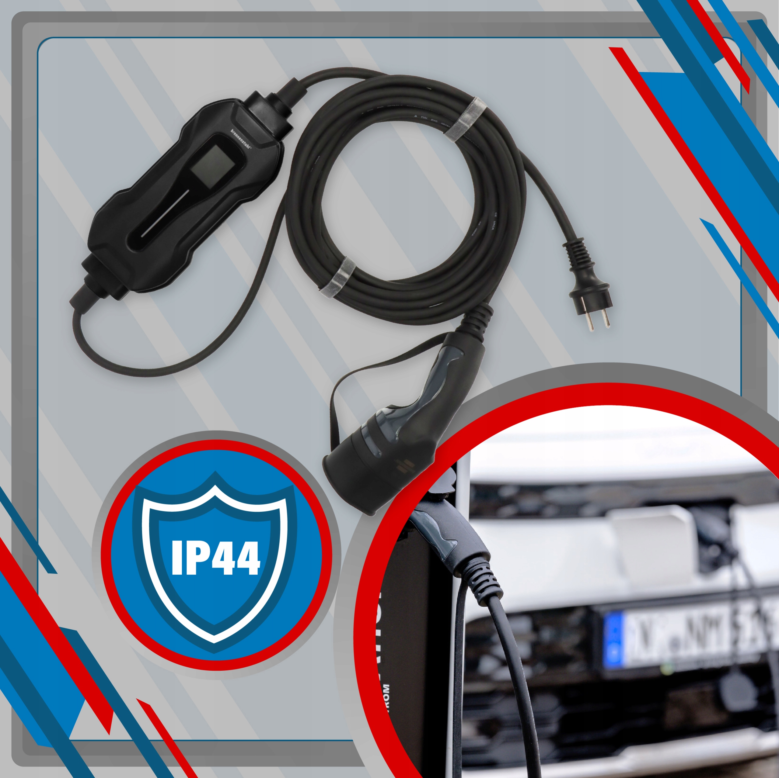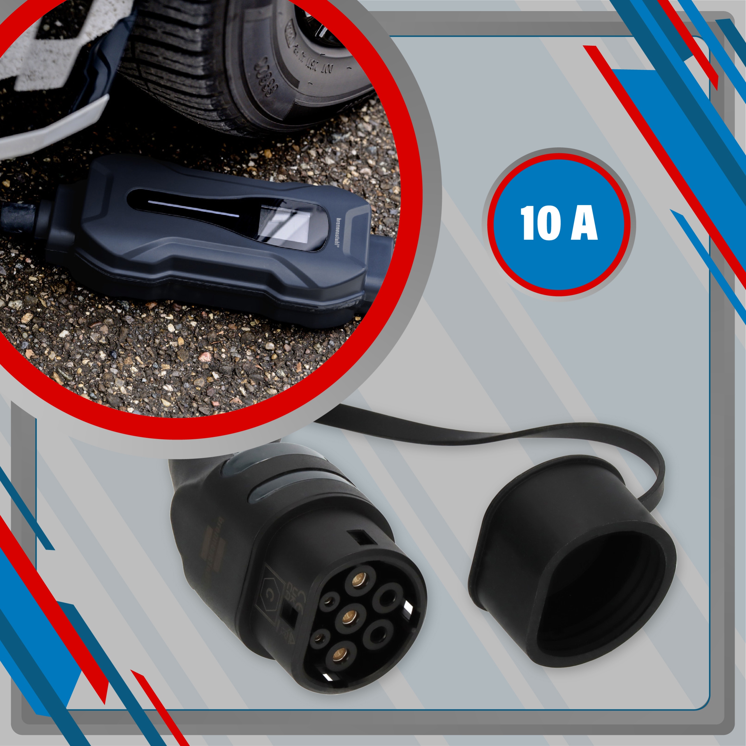 Портативний зарядний пристрій Brennenstuhl EV дозволяє проста, безпечна однофазна зарядка на державних та приватних станціях, оснащених захисним контактом.