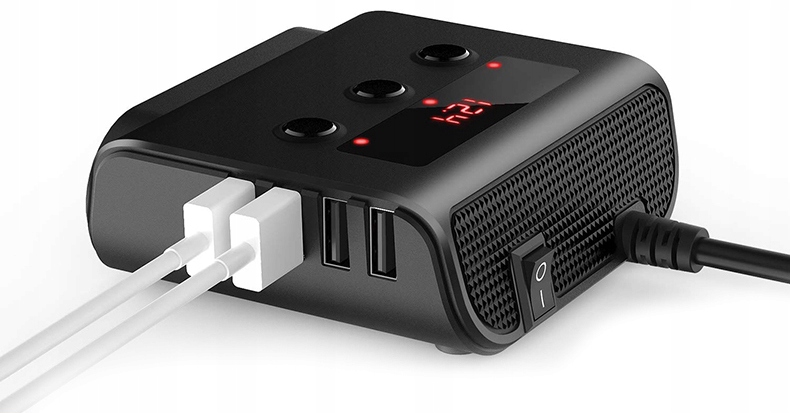 Розгалужувач розетки автомобільного прикурювача 12/24 В з 4 портами USB. Пристрій дозволяє підключити до автомобіля, обладнаного тільки одним прикурювачем, 3 пристрої, що живляться від розетки прикурювача.