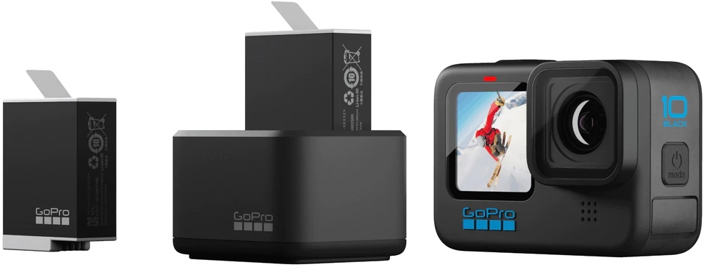 подвійний зарядний пристрій GoPro - це подвійний зарядний пристрій, з яким ви можете одночасно заряджати одну або дві акумулятори GoPro. Використовуйте камеру та заряджайте другий акумулятор одночасно. Завдяки цьому, ви та ваша камера Gopro Hero9 Black завжди буде готова зареєструвати дивовижні пригоди. Два світлодіоди інформують один одного про стан заряду обох батарей.