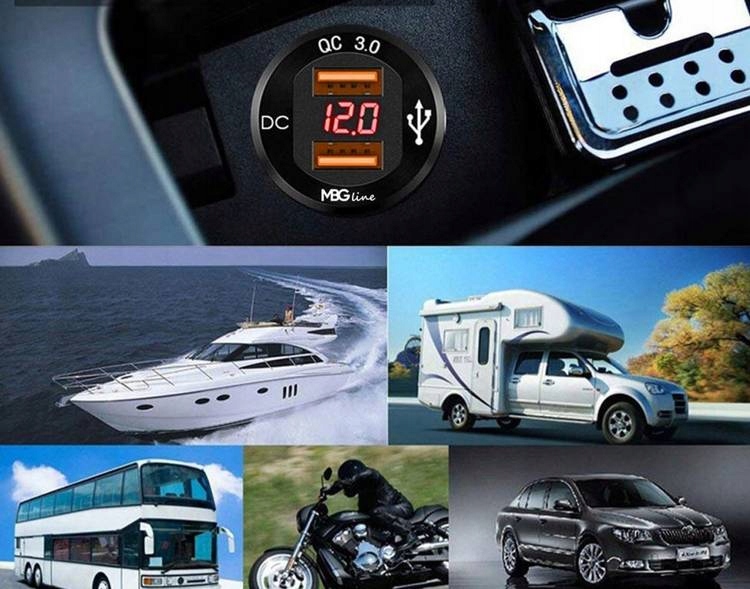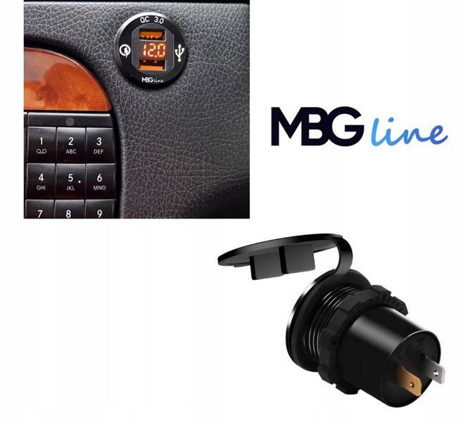 Водостійкий швидкий зарядний пристрій MBG LINE для автомобіля, мотоцикла, скутера, квадроцикла, моторного човна 2x USB QC3.0