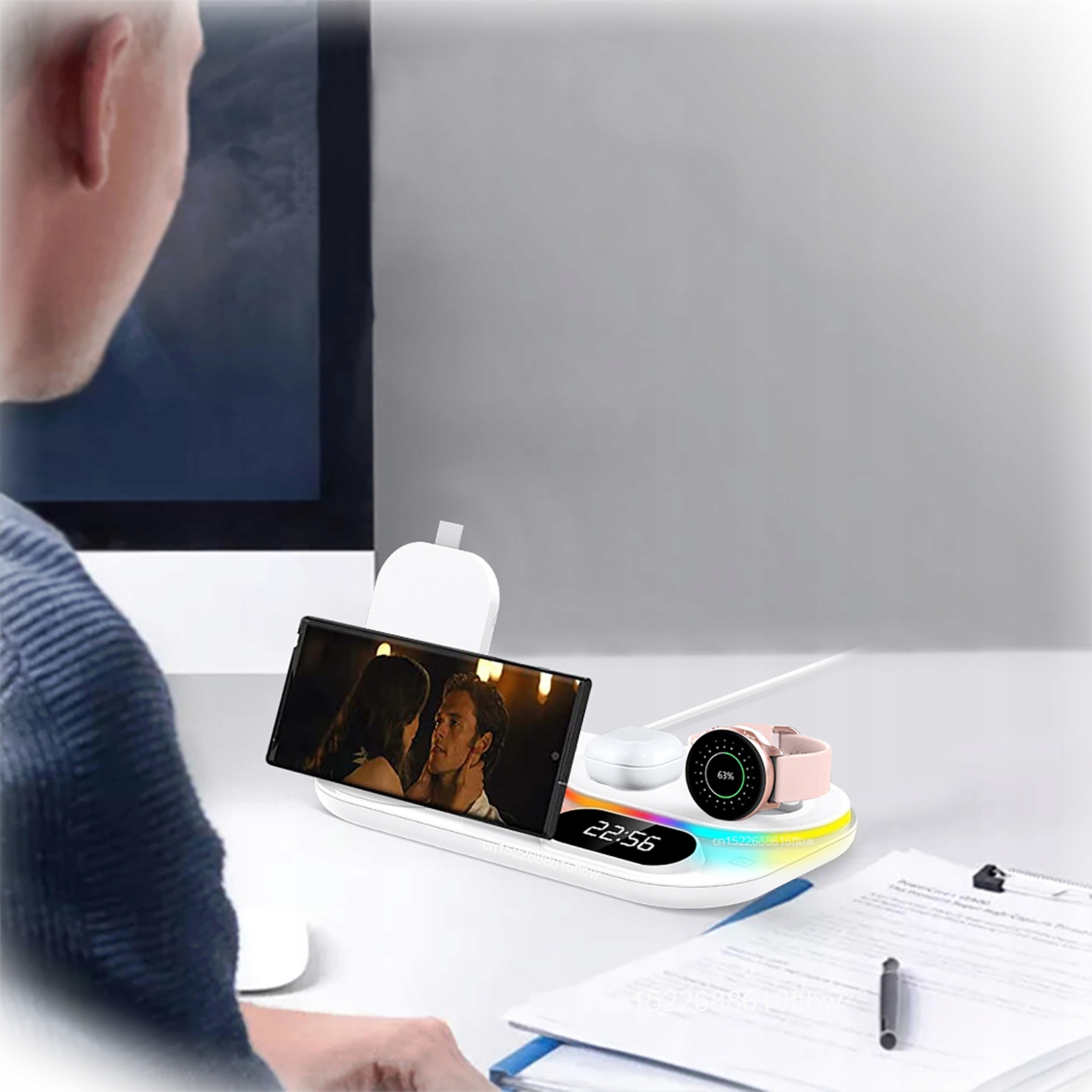 Бездротовий зарядний пристрій спеціально сумісний із мобільними телефонами Samsung, годинником і навушниками одночасно.