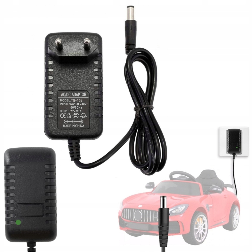 ЗАРЯДНИЙ ПРИСТРІЙ ДЛЯ АВТОМОБІЛІВ ТА ІГРАШОК НА АКУМУЛЯТОРІ СВІТОДІОДІВ 5,5 мм x 2,5 мм (сумісний із штекерами 5,5 мм x 2,1 мм) 12 В 1000 мА